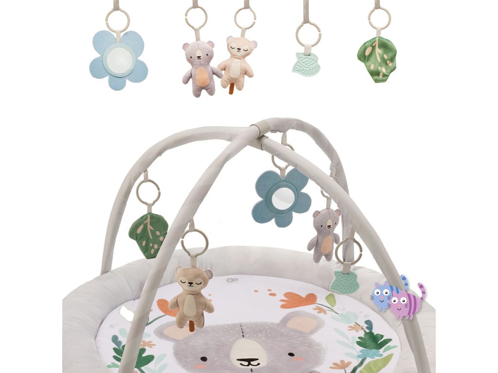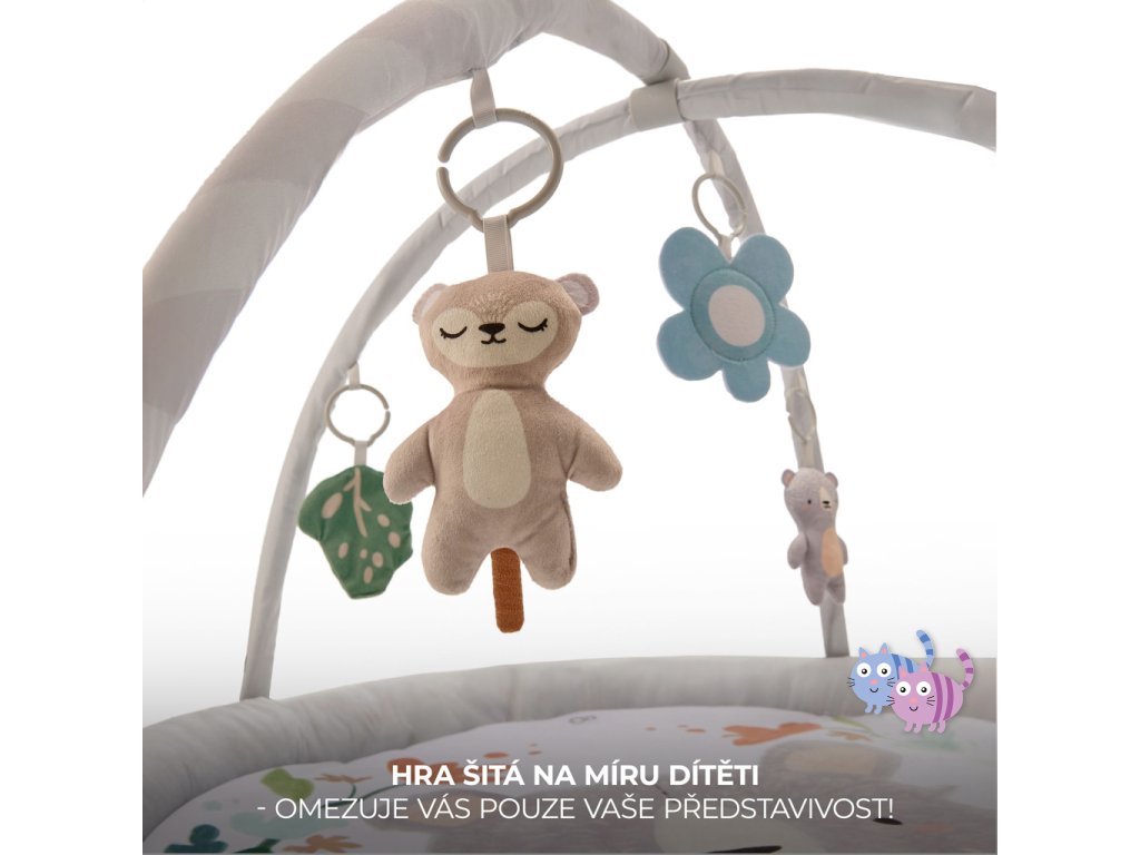 Vytvořte ideální prostor pro rozvoj vašeho děťátka! Na 2 měkké hrazdičky můžete pověsit hračky v různých konfiguracích.