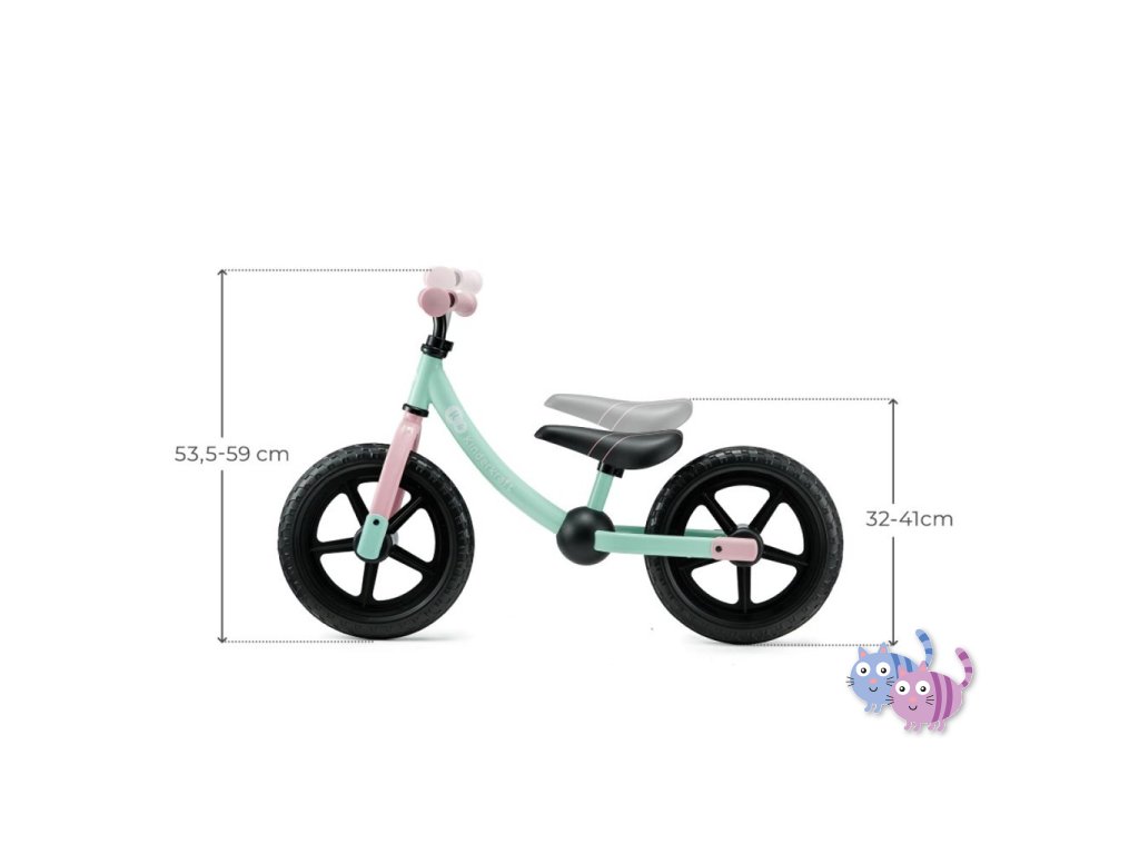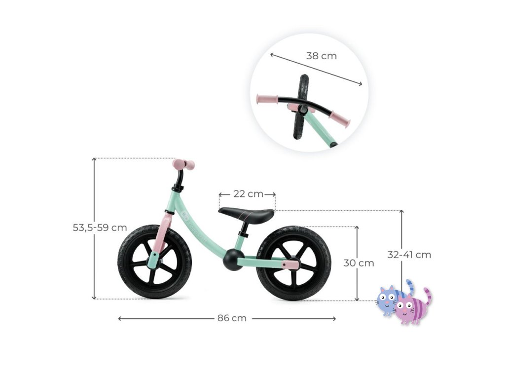- regulace – výšku řídítek a sedadla je možné přizpůsobit výšce dítěte. Nejnižší možná výška sedadla (31 cm) a také nízký rám jsou výsledkem, že je odrážedlo vhodné Pro děti již od 80 cm výšky.