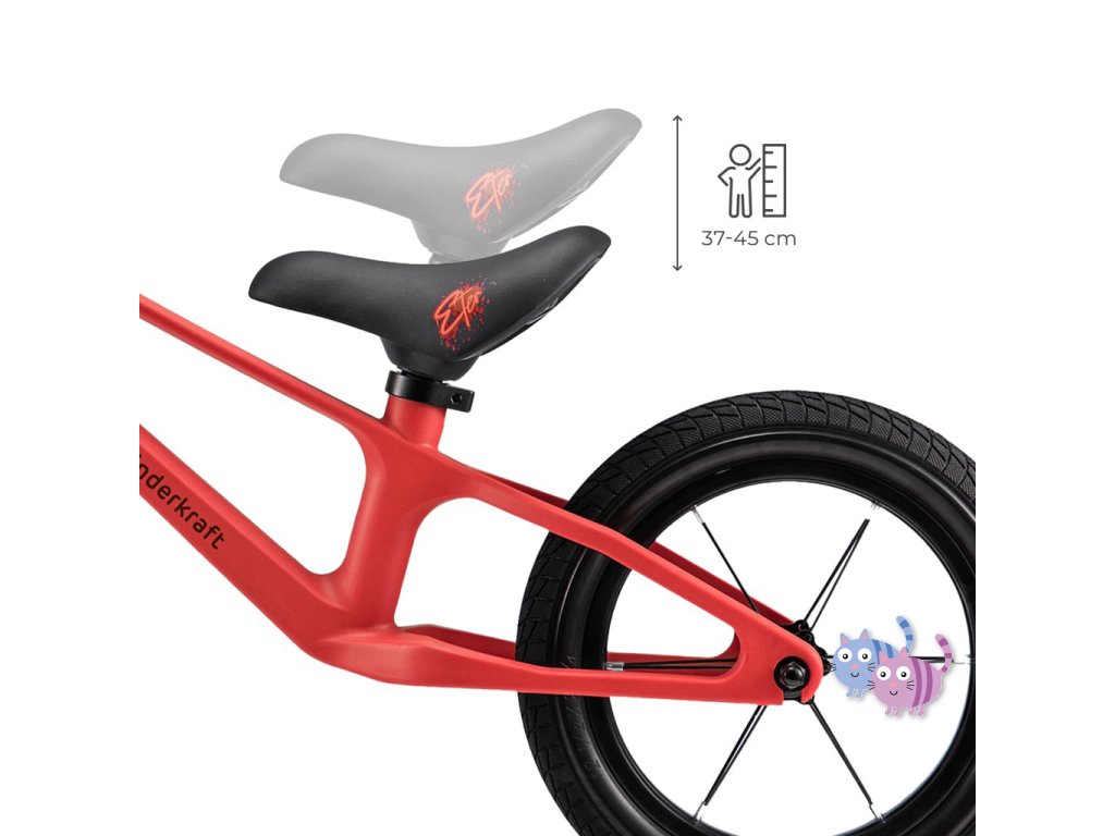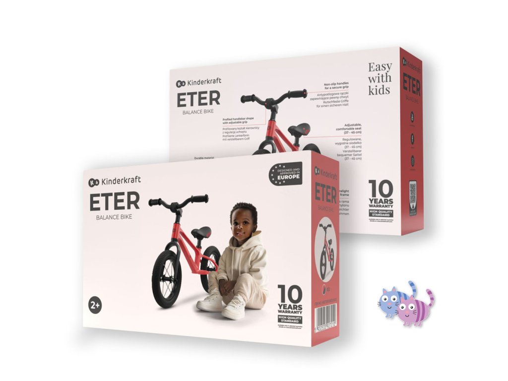 Vždy první v cíli. ETER je ultralehké balanční odrážedlo (3 kg) se sportovním designem, ideální pro malé milovníky rychlosti. Monolitický rám z nylonu je extrémně lehký, odolný vůči vlhkosti, korozi i mechanickému poškození. Nastavitelné sedátko a 12palcová bezúdržbová PU kola zajišťují pohodlnou a stabilní jízdu. Protiskluzové rukojeti, ergonomická řídítka a bezpečná konstrukce poskytují maximální ochranu. Rám slouží také jako praktická rukojeť pro přenášení – nebo jako místo k odpočinku během hry.