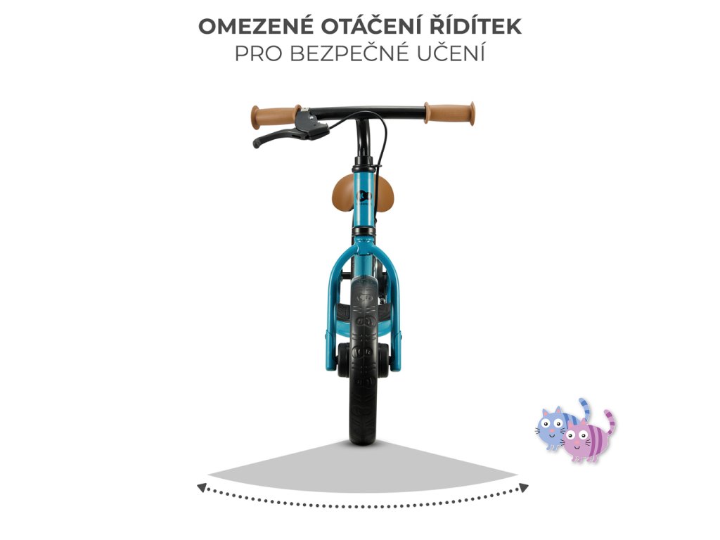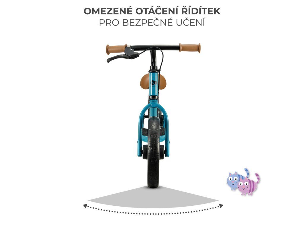 - Pojistka proti otočení řídítek zabraňuje nadměrnému a nekontrolovatelnému otáčení při jízdě a chrání tak dítě před pádem.