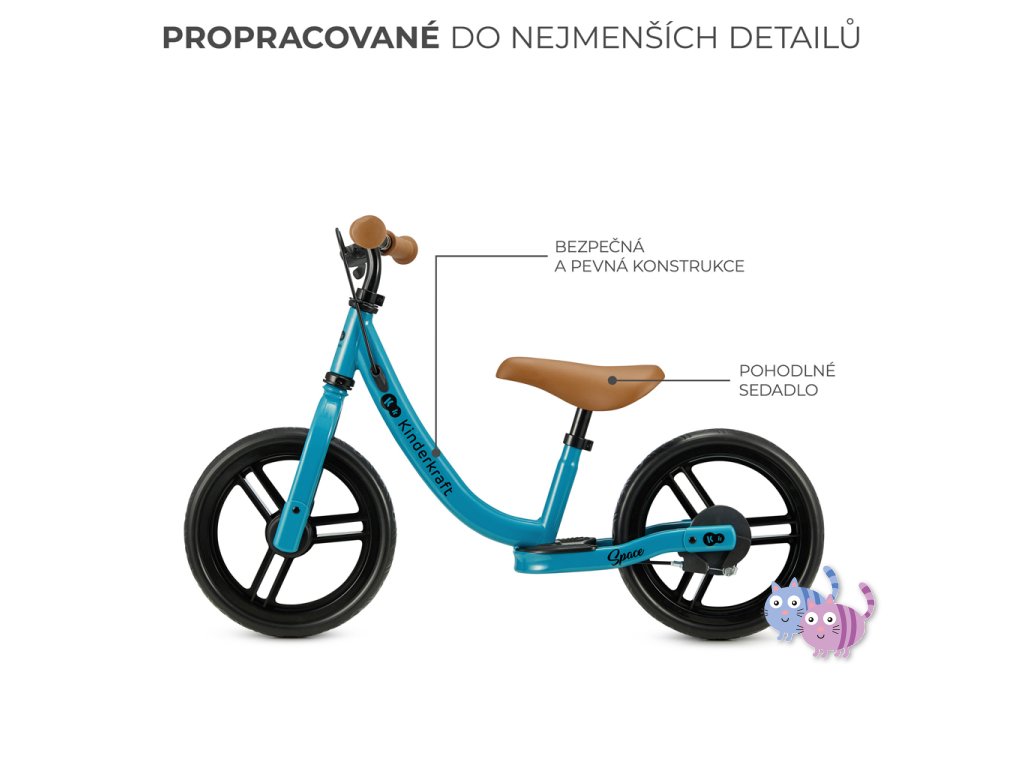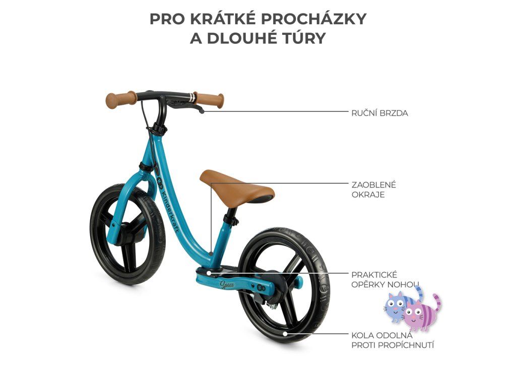 Odrážedlo SPACE značky Kinderkraft je produkt, který rozvíjí schopnost Vašeho dítěte držet rovnováhu. Díky němu dítě rozvíjí své motorické dovednosti a připravuje se na nácvik jízdy na kole. Kromě toho je model SPACE vybaven ruční brzdou, která zvyšuje bezpečnost dítěte. Je také velmi lehký a velká kola s nepropíchnutelnými pneumatikami usnadňují trénink držení rovnováhy. Nainstalované podnožky umožňují podepření nohou za jízdy.