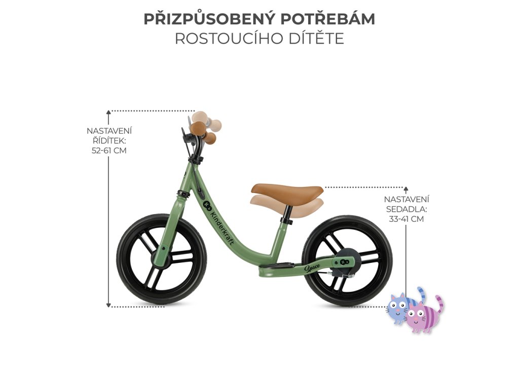 Odrážedlo SPACE značky Kinderkraft je produkt, který rozvíjí schopnost Vašeho dítěte držet rovnováhu. Díky němu dítě rozvíjí své motorické dovednosti a připravuje se na nácvik jízdy na kole. Kromě toho je model SPACE vybaven ruční brzdou, která zvyšuje bezpečnost dítěte. Je také velmi lehký a velká kola s nepropíchnutelnými pneumatikami usnadňují trénink držení rovnováhy. Nainstalované podnožky umožňují podepření nohou za jízdy.