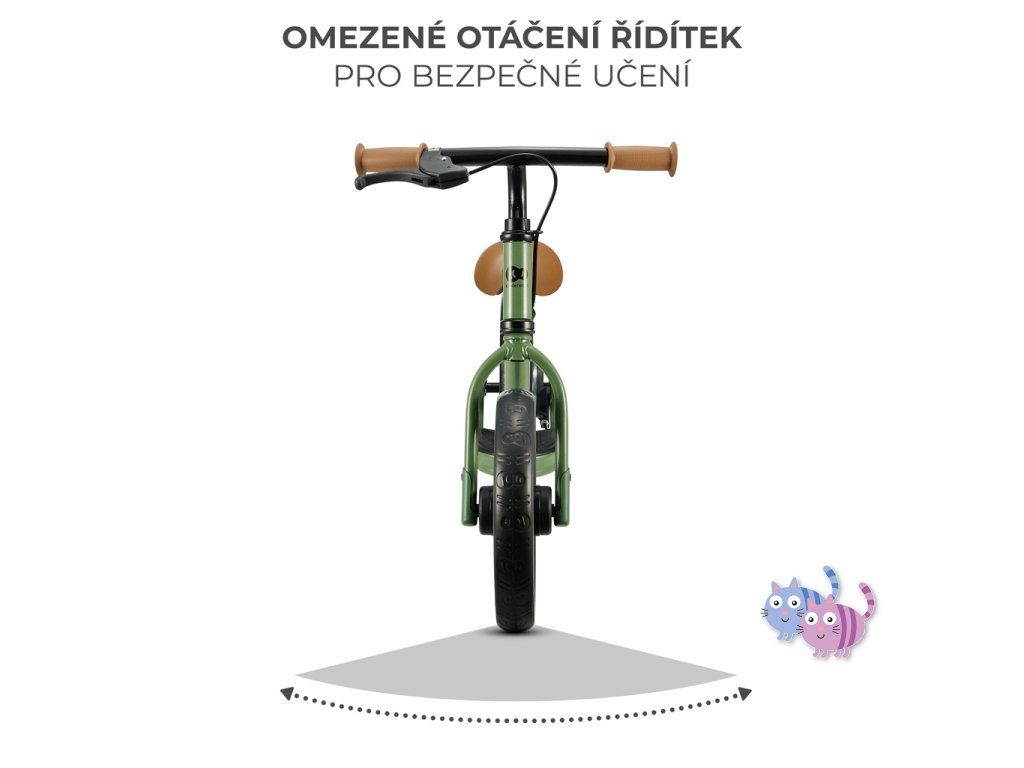 - Pojistka proti otočení řídítek zabraňuje nadměrnému a nekontrolovatelnému otáčení při jízdě a chrání tak dítě před pádem.