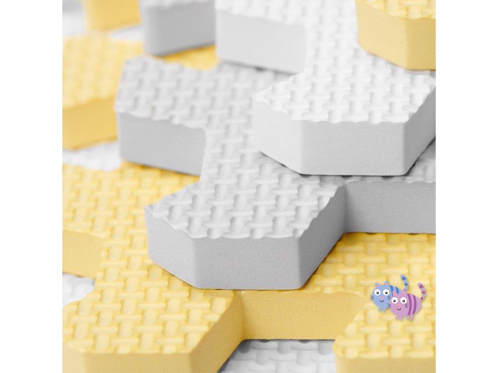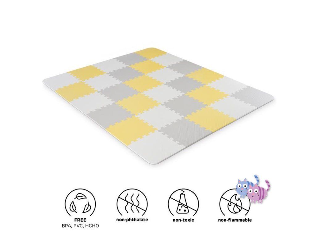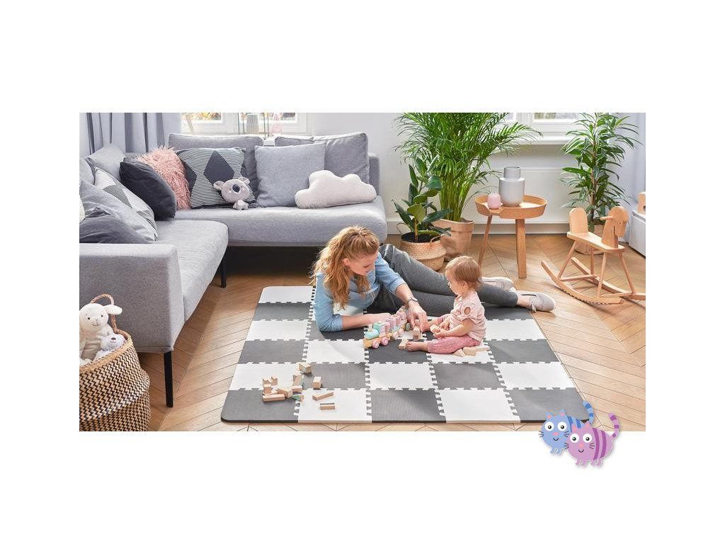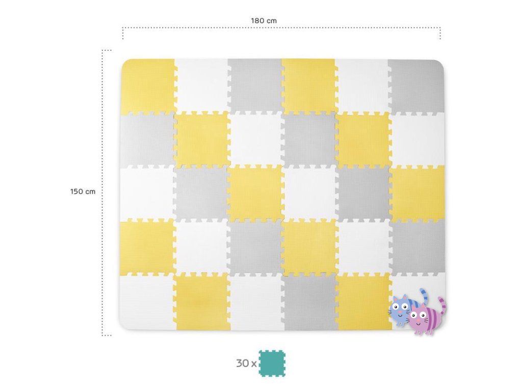 Praktická a pohodlná pěnová podložka z 30 puzzlí, které lze spojovat libovolným způsobem. Je určena k zábavě pro vaše dítě. Může na ní ležet nebo na ní dělat první kroky. Neutrální, kontrastní barvy puzzlí jsou dokonalým dekorativním prvkem místnosti. Jsou vyrobeny z pěny, jsou bezpečné a neobsahují škodlivé substance což je potvrzeno testy z nezávislé laboratoře INTERTEK. Navíc se snadno udržují čisté. V sestavě je též taška k přechovávání puzzlí.