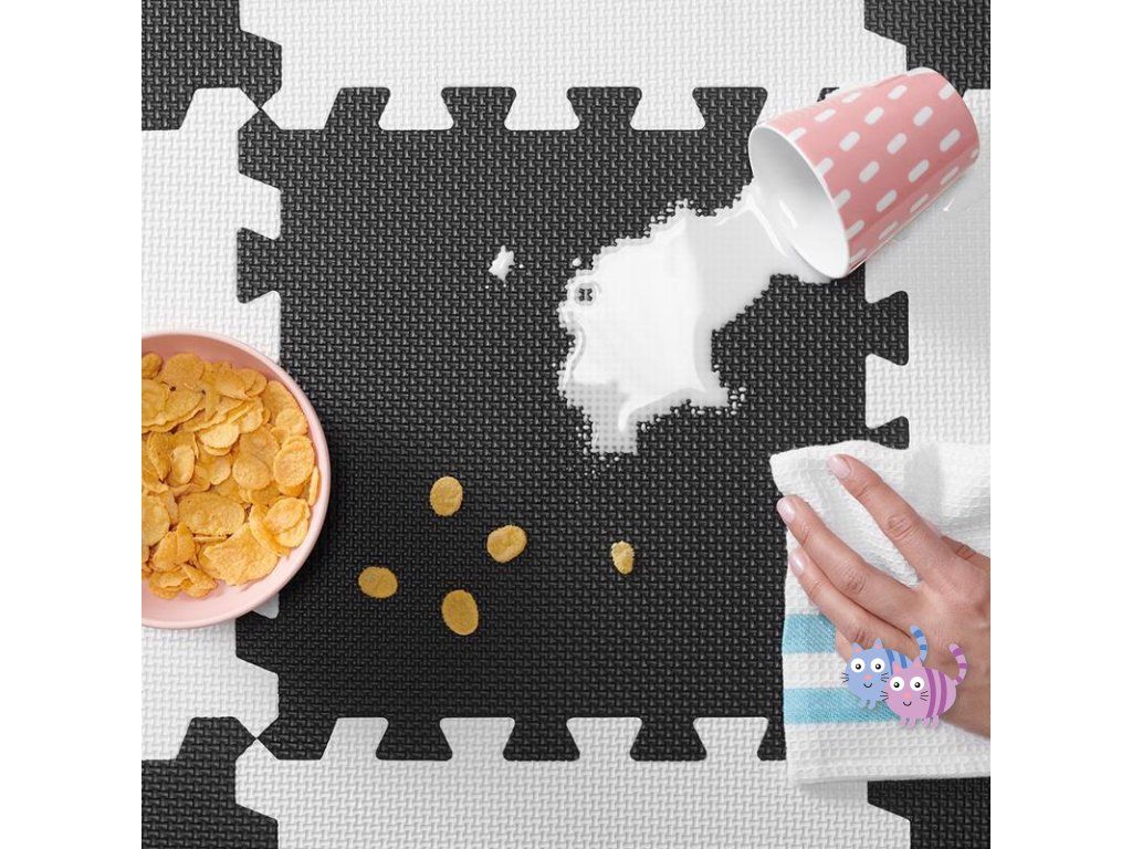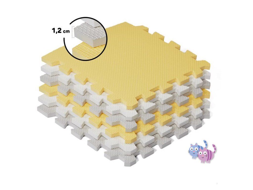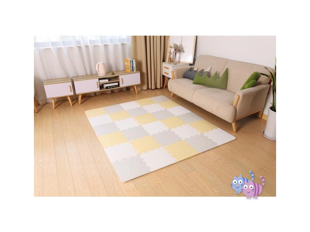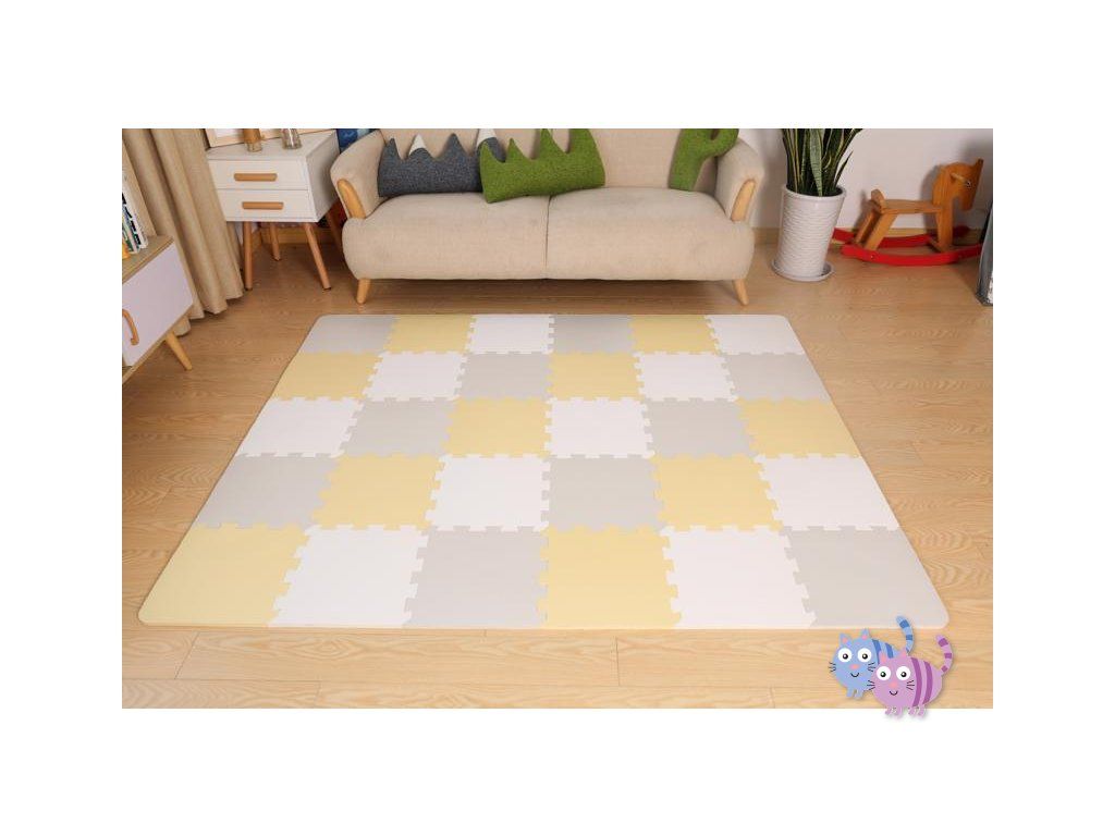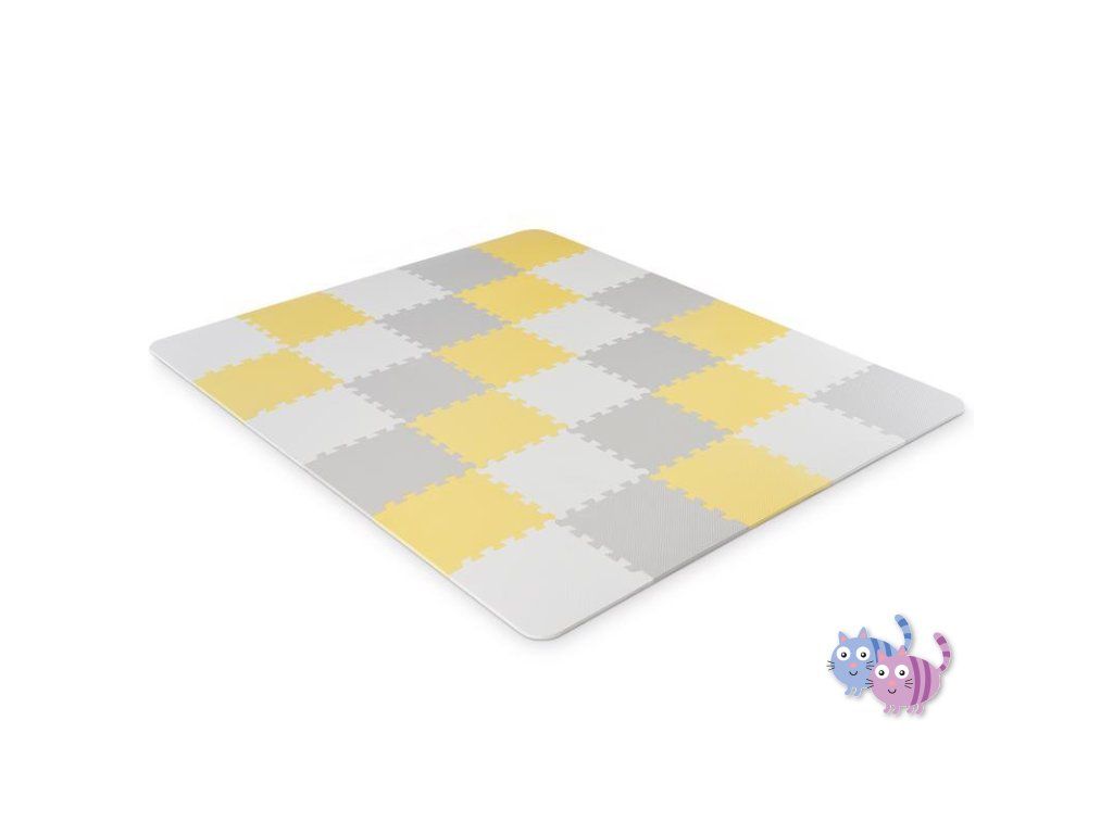 Praktická a pohodlná pěnová podložka z 30 puzzlí, které lze spojovat libovolným způsobem. Je určena k zábavě pro vaše dítě. Může na ní ležet nebo na ní dělat první kroky. Neutrální, kontrastní barvy puzzlí jsou dokonalým dekorativním prvkem místnosti. Jsou vyrobeny z pěny, jsou bezpečné a neobsahují škodlivé substance což je potvrzeno testy z nezávislé laboratoře INTERTEK. Navíc se snadno udržují čisté. V sestavě je též taška k přechovávání puzzlí.