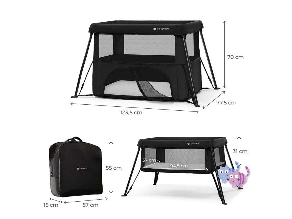 KINDERKRAFT Postieľka cestovná Cami Black