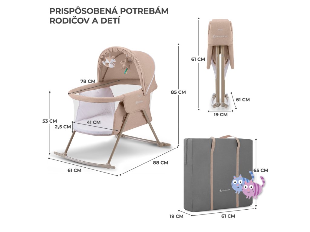 KINDERKRAFT Postýlka dětská 3v1 Lovi Beige