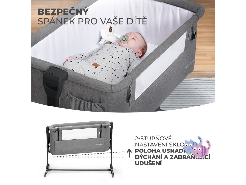 KINDERKRAFT Postýlka dětská polohovatelná Neste grow Grey Melange