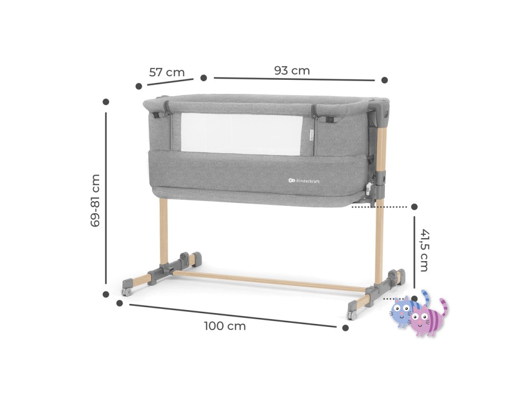 - Nohy nastavitelné na délku umožňují přesněji nastavit vzdálenost mezi postýlkou a postelí rodiče.