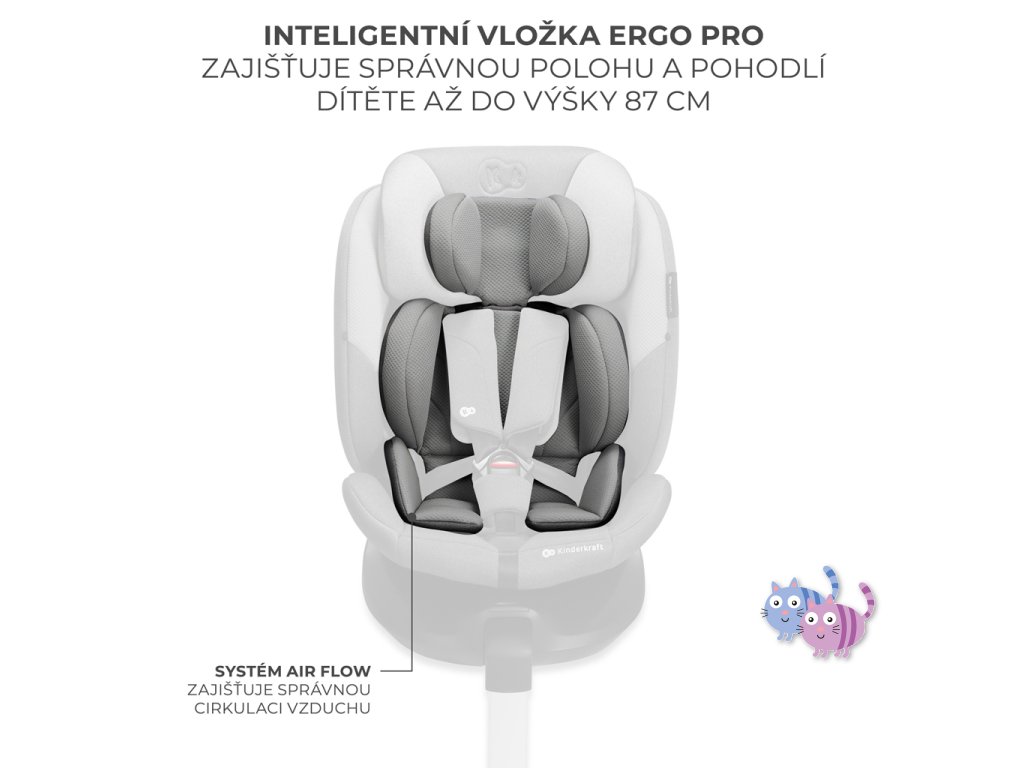 Sedačka má vložku ERGO PAD PRO s prodlouženým rozsahem použití (až do výšky 87 cm). Podporuje správnou anatomickou polohu těla dítěte při jízdě. Vložka je vybavena systémem AIR FLOW, který zajišťuje dostatečnou cirkulaci vzduchu během horkého počasí.