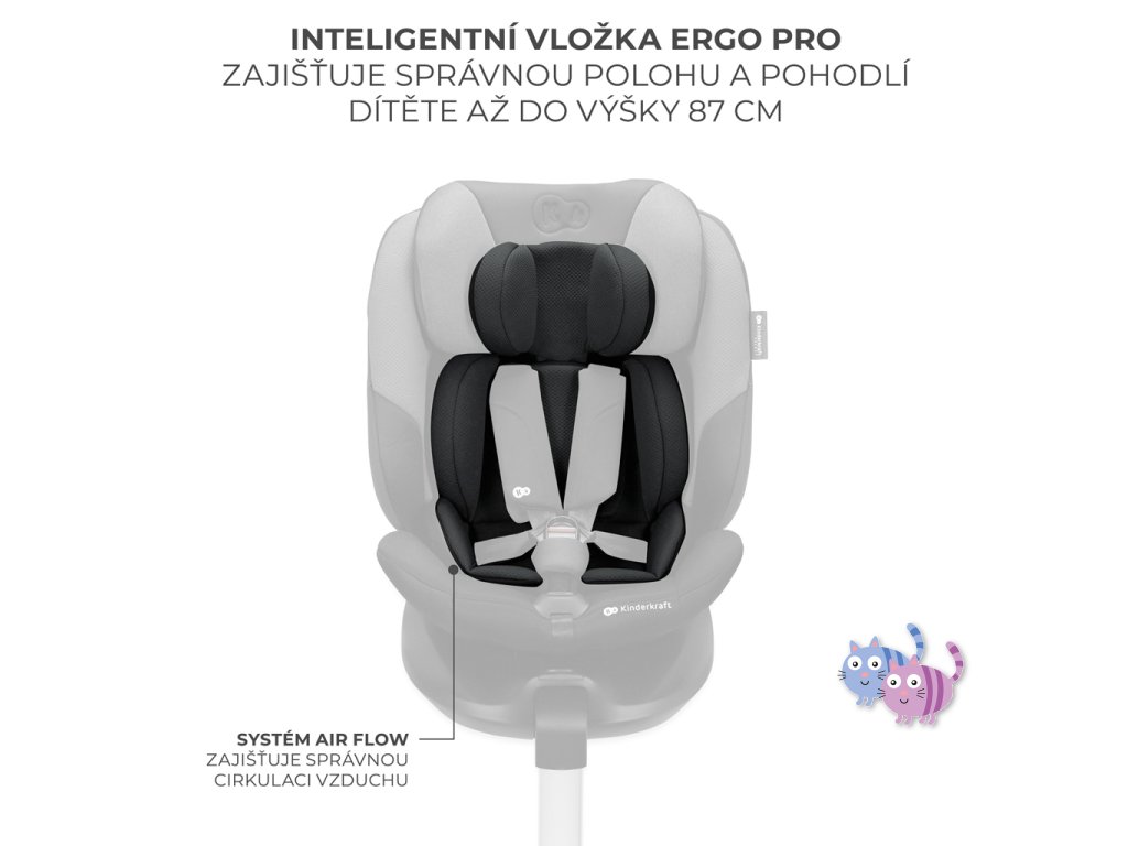 Sedačka má vložku ERGO PAD PRO s prodlouženým rozsahem použití (až do výšky 87 cm). Podporuje správnou anatomickou polohu těla dítěte při jízdě. Vložka je vybavena systémem AIR FLOW, který zajišťuje dostatečnou cirkulaci vzduchu během horkého počasí.