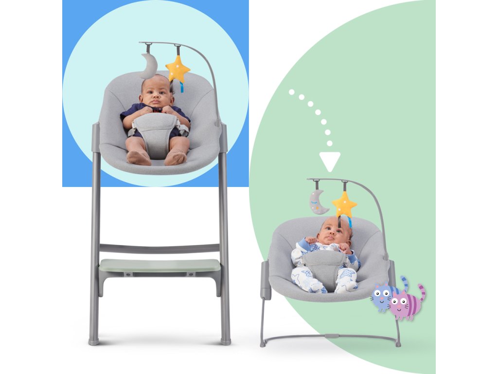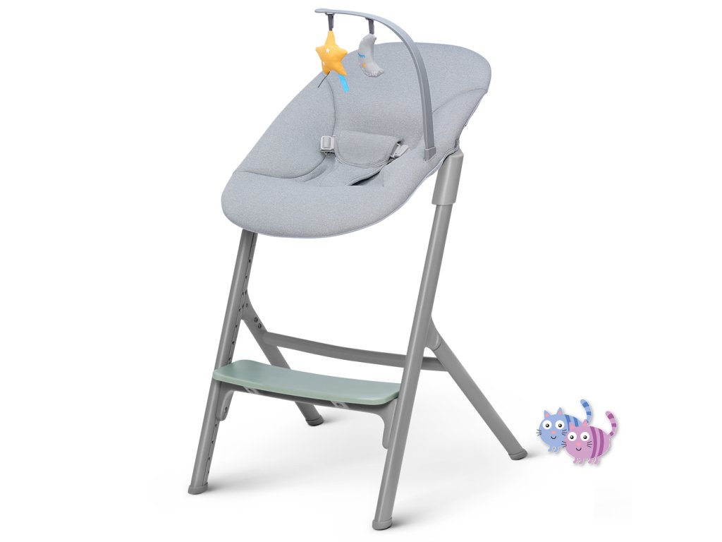 - vysoké houpátko od narození - lehátko lze používat společně s židličkou nebo samostatně. Díky závěsným hračkám si batole procvičí jemnou motoriku.