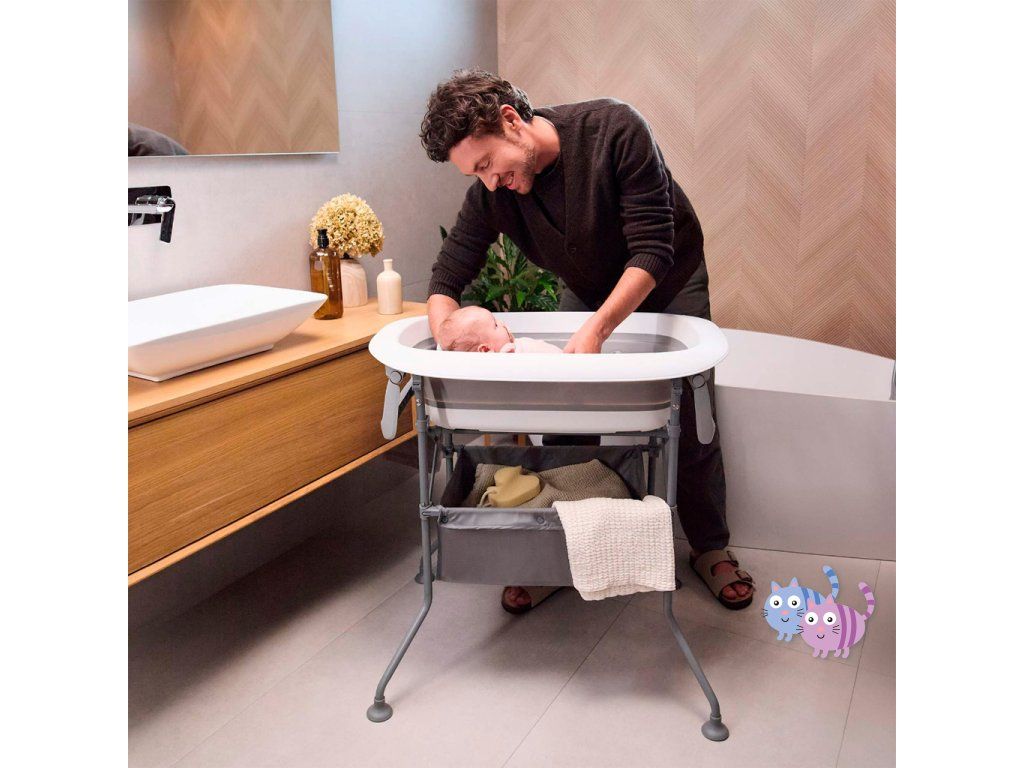 Multifunkční pomocník na koupání a přebalování, doma i na cestách. BUBBLY je ideálním řešením pro rodiče, kteří hledají praktický a prostorově úsporný způsob péče o miminko. Spojuje funkci vaničky a přebalovacího pultu v jednom kompaktním setu, který můžete používat doma, v malých koupelnách nebo si jej jednoduše vzít s sebou na cesty. Vanička má silikonové dno, které umožňuje složení naplocho, a stabilní rám s protiskluzovými nožičkami. Přebalovací pult můžete používat samostatně, zavěsit jej na bok rámu nebo připevnit přímo na vaničku. Praktičnost, bezpečnost a snadnost použití – to vše naleznete v BUBBLY.