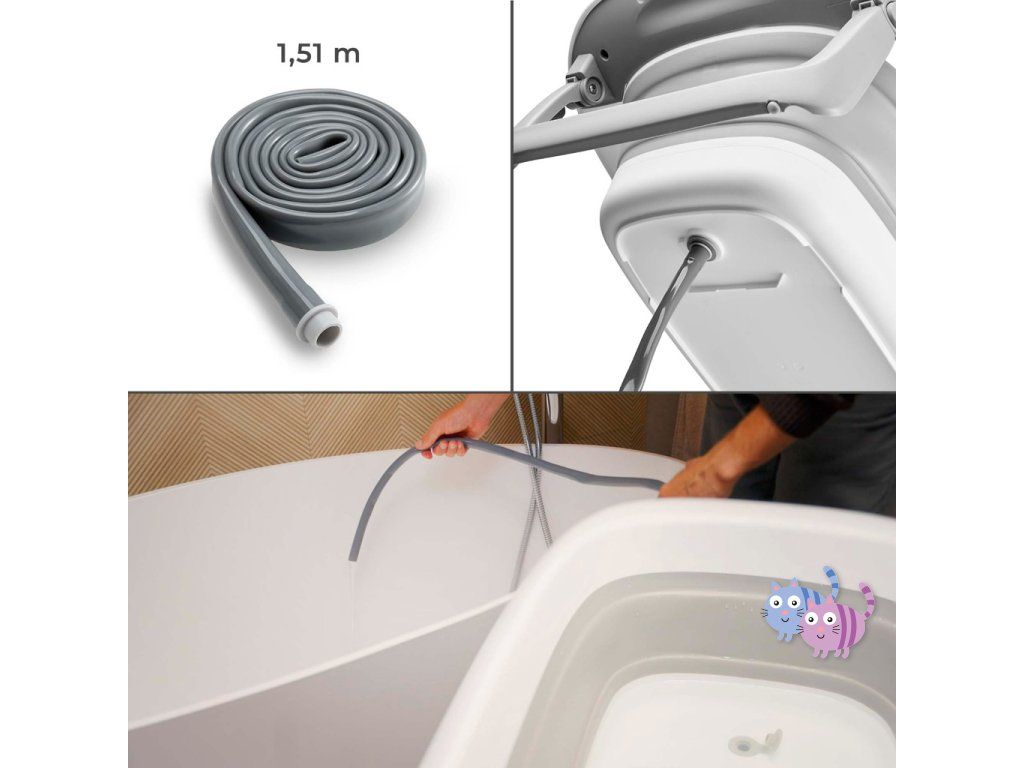 - Odtok s 151 cm dlouhou hadicí – bez zvedání nebo přelévání