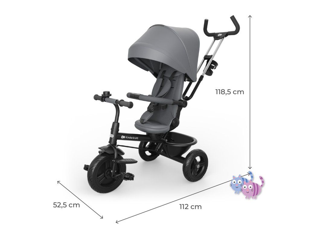 KINDERKRAFT Tříkolka Aston 2 Plus Grey, 9m+