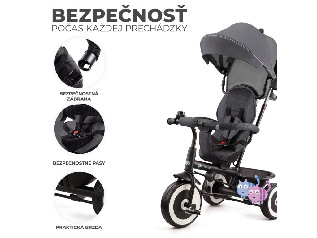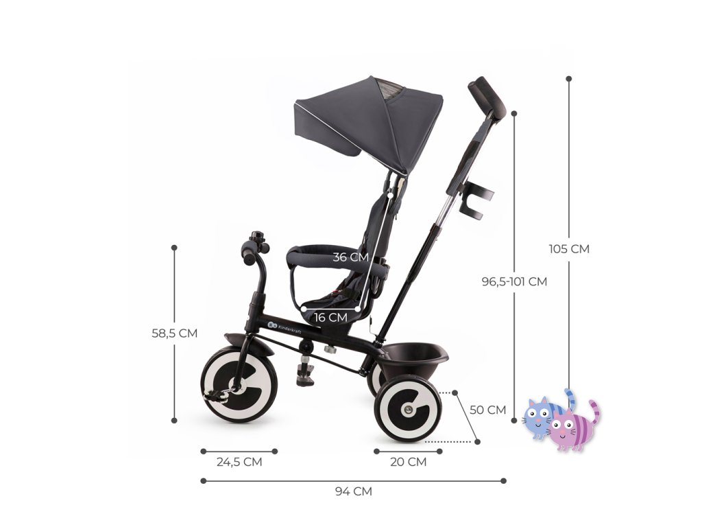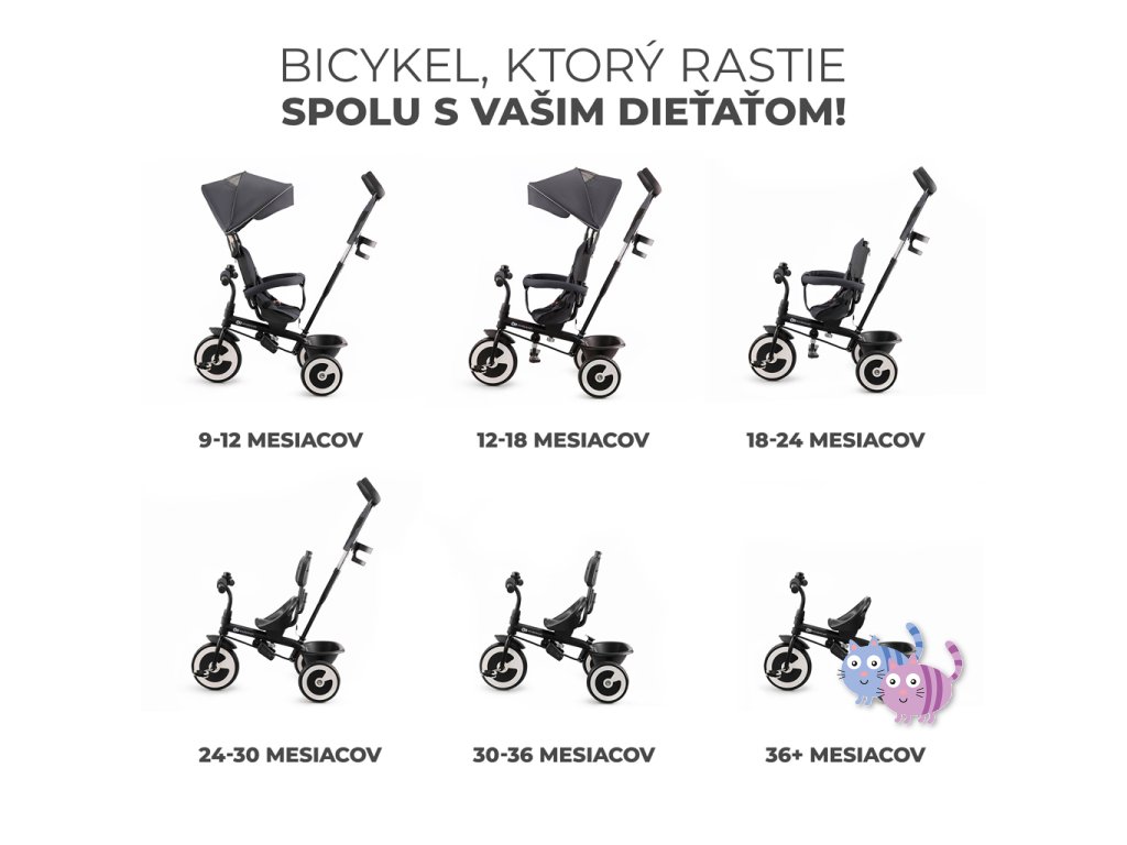 ASTON je tříkolka určená pro děti ve věku od 9 měsíců do asi 5 let. Je to dětské kolo, které roste s vaším dítětem. Díky různým nastavením ho snadno přizpůsobíte věku a výšce vaší ratolesti. Nejprve vám ASTON poslouží jako společník na procházky a to od chvíle, kdy se vaše dítě naučí sedět. Stačí otočit sedadlo čelem k sobě, připoutat dítě pásem a jede se!