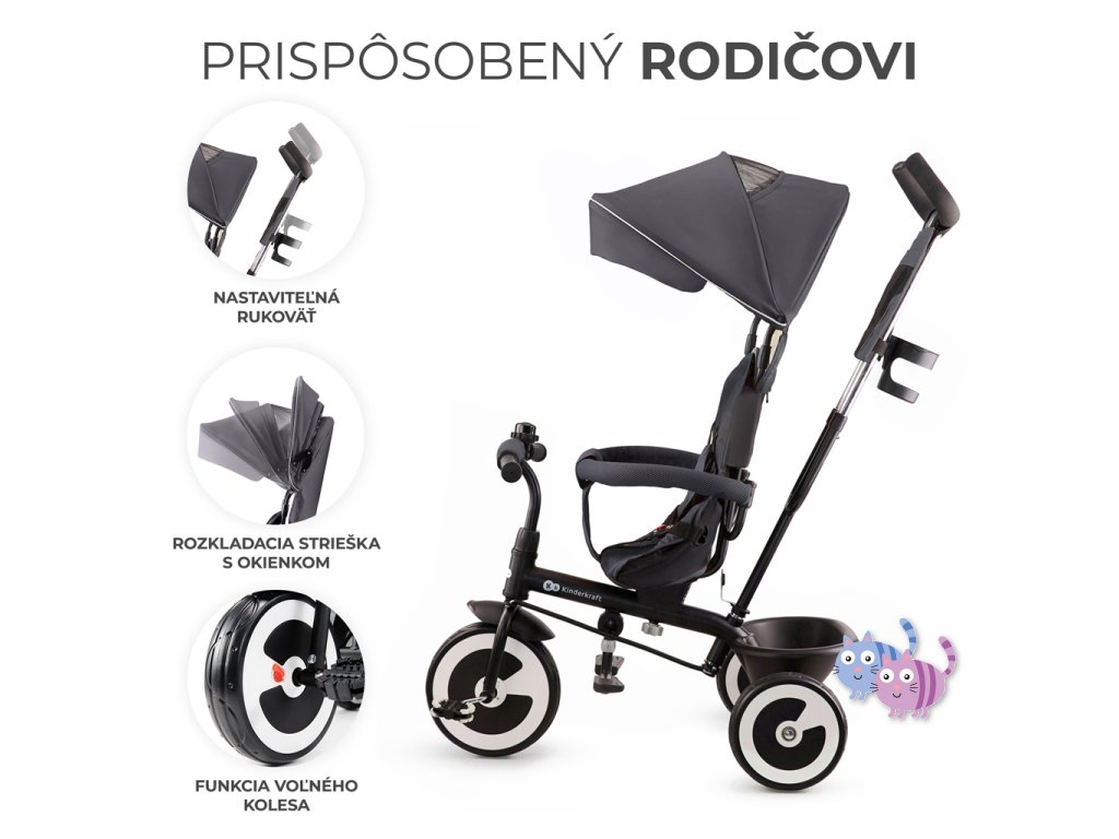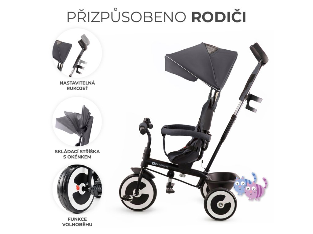 Pro usnadnění řízení tříkolky pro rodiče a opatrovníky dětí, má ASTON nastavitelnou rodičovskou rukojeť. Během několika okamžiků si jeho výšku přizpůsobíte své výšce bez použití jakéhokoli nářadí.