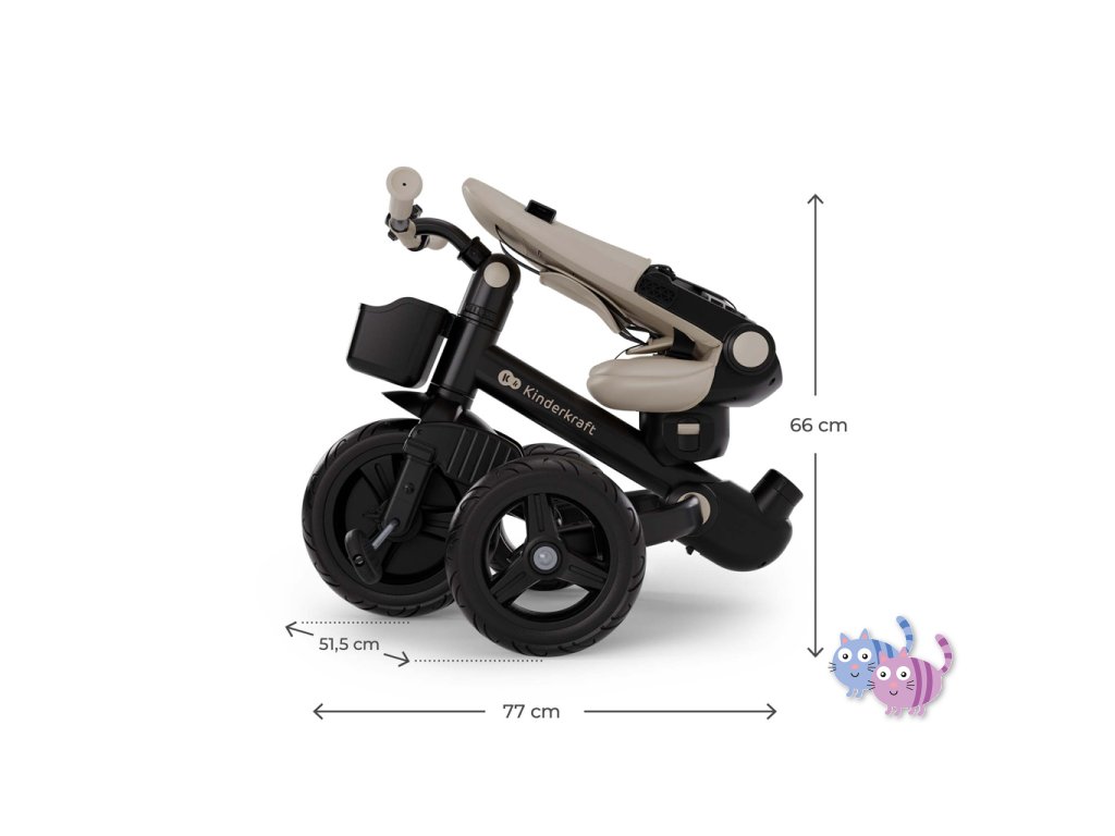 - Rozměry složené tříkolky: 66 × 77 × 51,5 cm