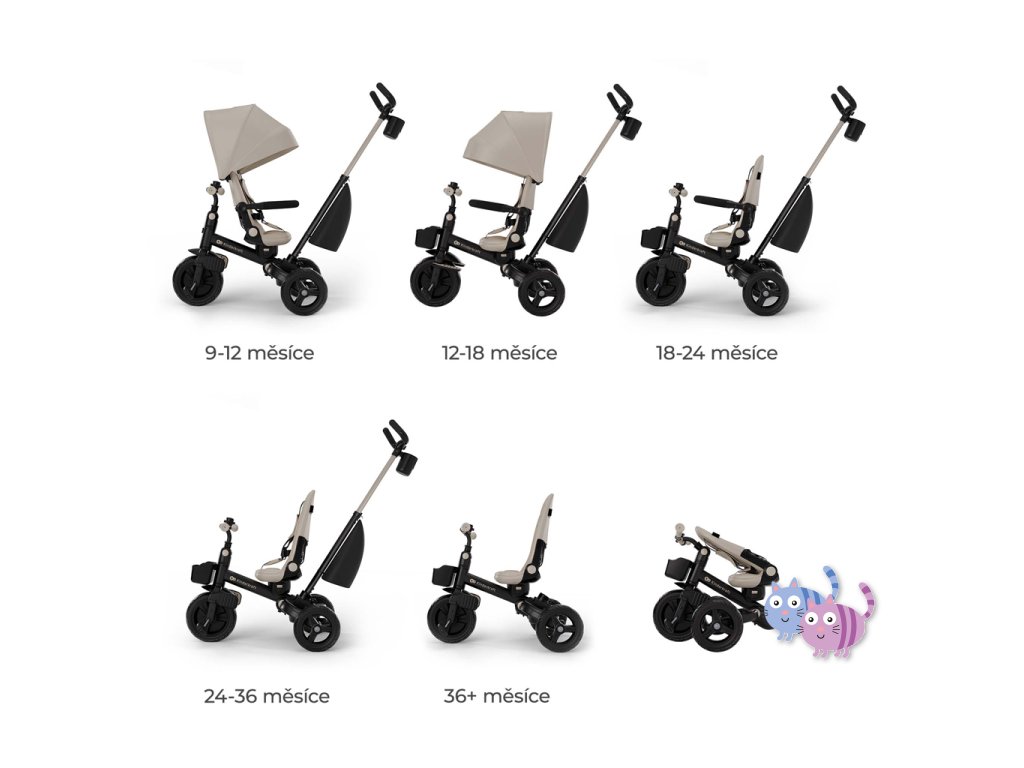 - Od 9 měsíců do 5 let – tříkolka roste spolu s dítětem.