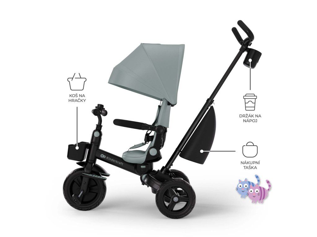 Kinderkraft AVEO 2 PLUS je multifunkční tříkolka, která se stane nenahraditelným společníkem společných procházek od 9. měsíce až do pěti let věku dítěte. Navržena s ohledem na pohodlí dítěte i komfort rodiče, spojuje funkcionalitu sportovního kočárku a tříkolky. Umožňuje pohodlný spánek, když sledování světa unaví malé oči, díky možnosti sklopení opěradla do ležící polohy. Ergonomické sedadlo s možností otáčení o 360° umožňuje dítěti cestovat čelem k rodiči nebo čelem do směru jízdy podle nálady a touhy poznávat okolí. AVEO 2 PLUS dělá z každého výletu společnou radost. Funkce volného kola je opravdovým potěšením pro nejmenší – první pokusy o jízdu na kole při zachování kontroly nad směrem ze strany rodiče. Stříška s filtrem UPF50+ a voděodolná tkanina chrání před různými povětrnostními podmínkami, zatímco systém Air Flow zajišťuje správné větrání v teplých dnech. Tříkolku doplňují praktické příslušenství – taška, zvonek, držák na pohár a dva košíky, které pojmou oblíbené hračky i nezbytnosti na procházku. Díky rychlému a intuitivnímu skládání AVEO 2 PLUS snadno uložíte do skříně či kufru a připravíte ho na další dobrodružství.