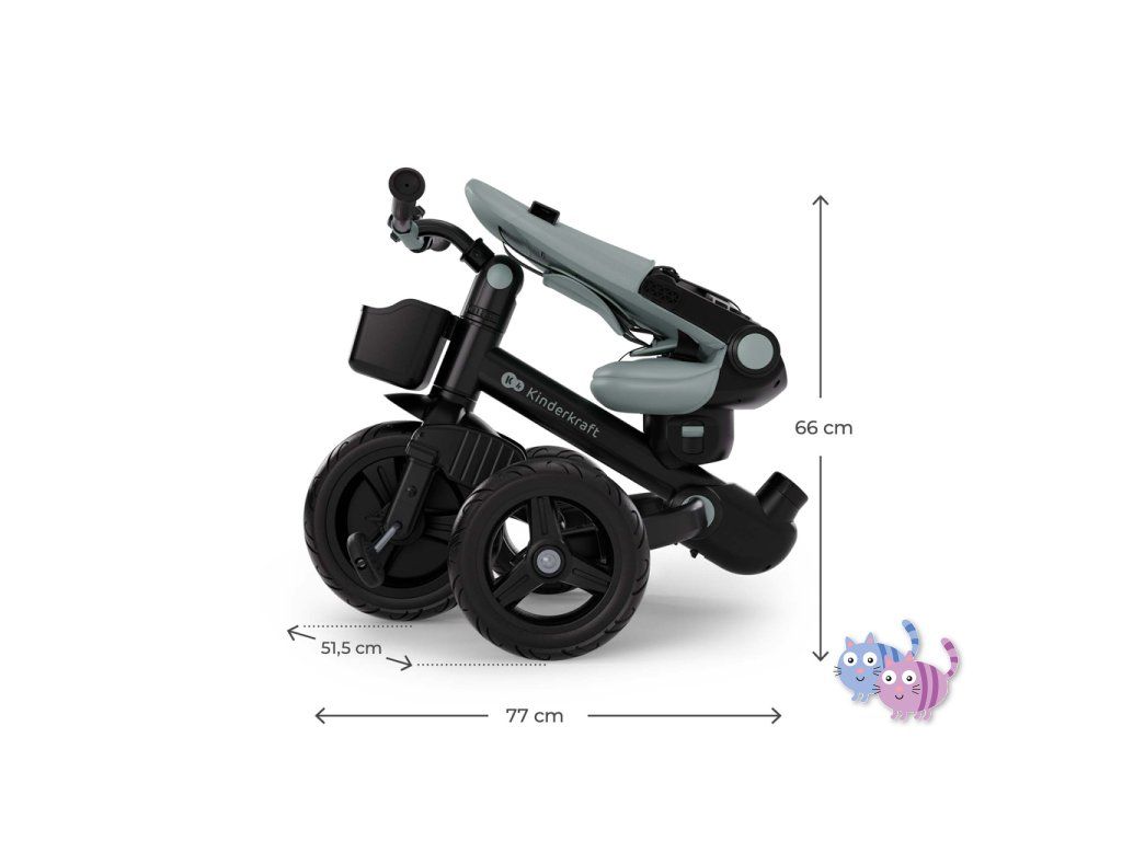 - Rozměry složené tříkolky: 66 × 77 × 51,5 cm.