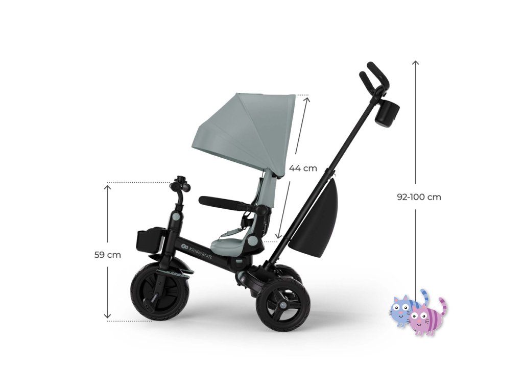 - Nastavitelná rukojeť pro rodiče – 3 úrovně výšky pro pohodlné vedení.