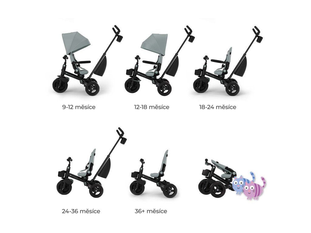 - Od 9 měsíců do 5 let – tříkolka roste s dítětem.