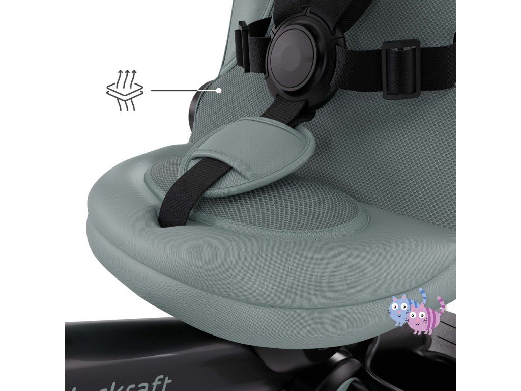 - Stříška s filtrem UPF50+ – účinná ochrana před sluncem a větrem.