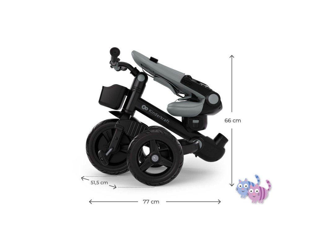 - Rozměry složené tříkolky: 66 × 77 × 51,5 cm