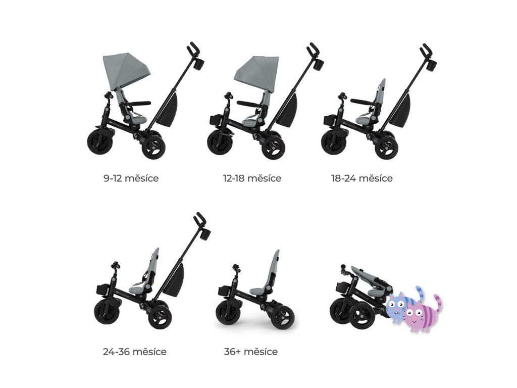 - Od 9 měsíců do 5 let – tříkolka roste spolu s dítětem.