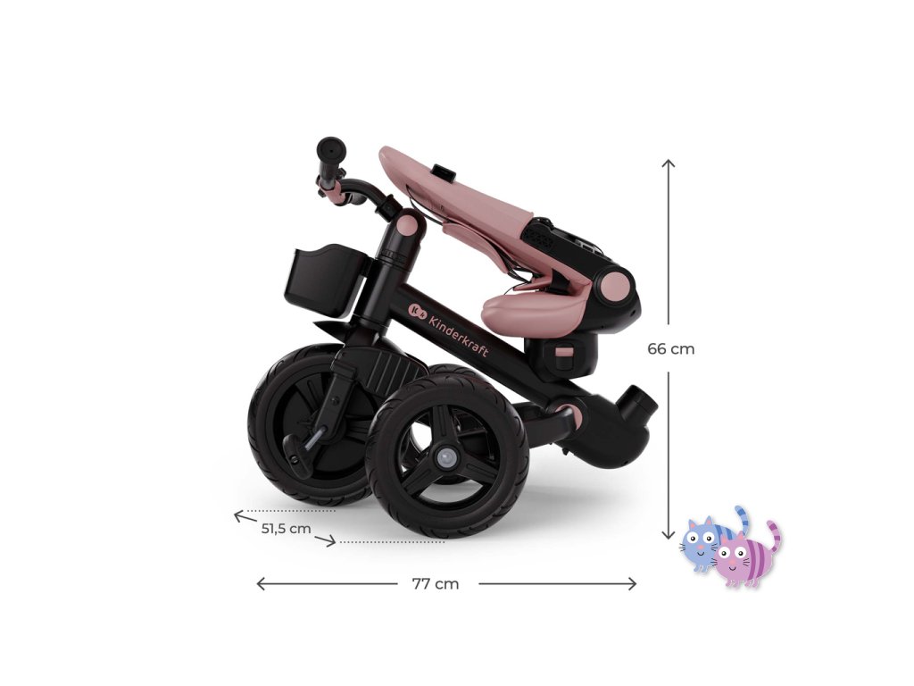 - Rozměry složené tříkolky: 66 × 77 × 51,5 cm