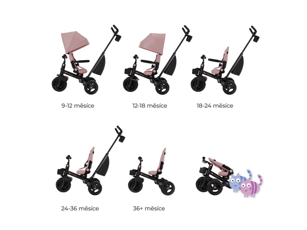 - Od 9 měsíců do 5 let – tříkolka roste spolu s dítětem.