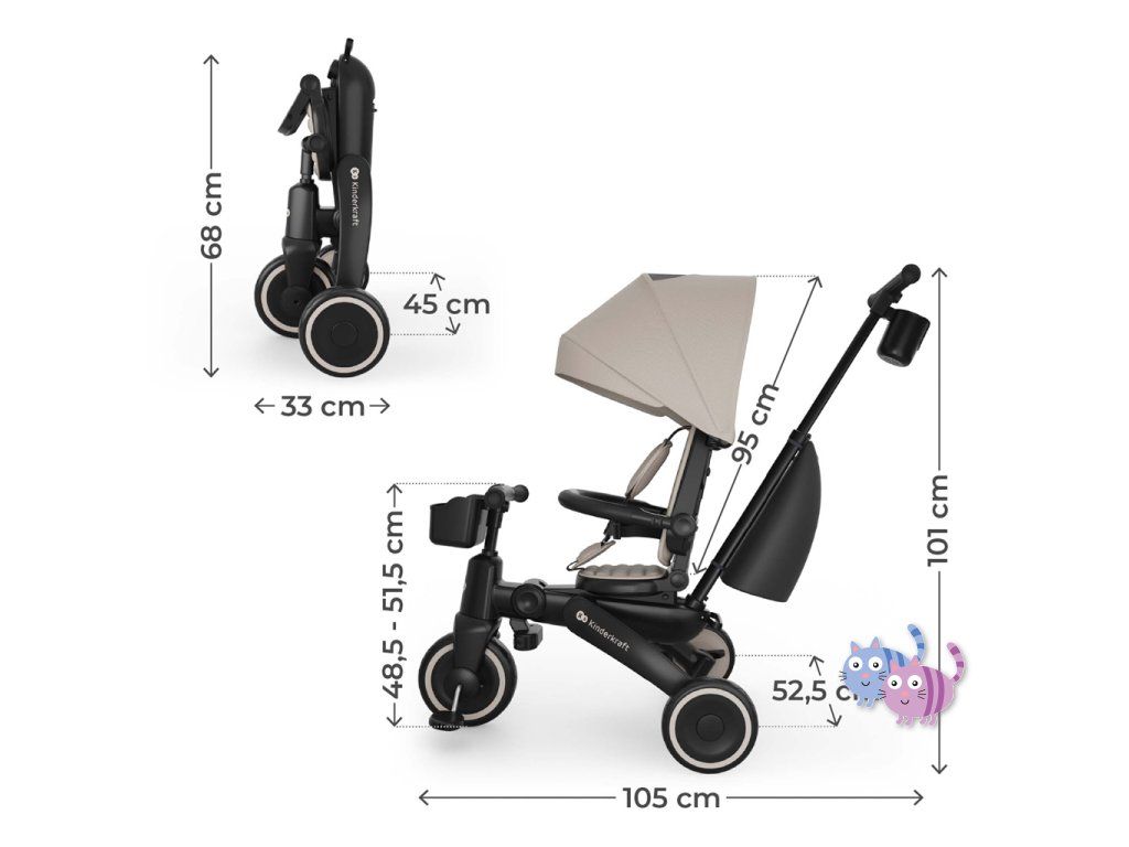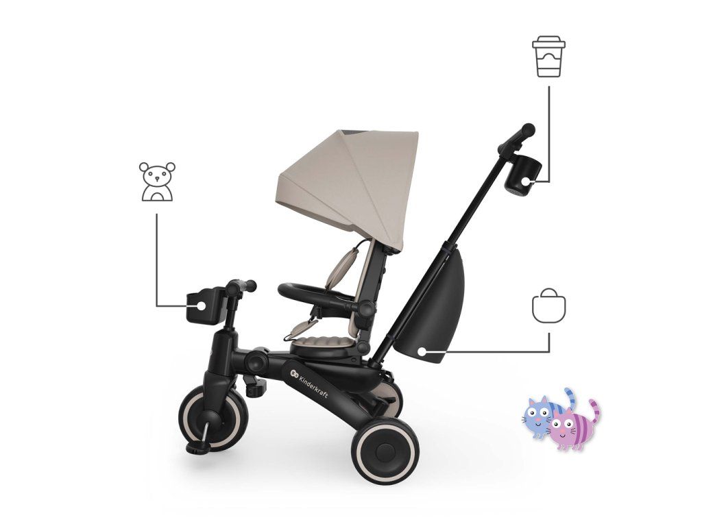 Kinderkraft JAZZ 3 kombinuje tříkolku vedenou rodičem s fází učení samostatné jízdy. Díky 6 režimům používání se model přizpůsobuje vývoji dítěte - od jízdy proti směru s kontrolou rodiče, přes samostatné šlapání až po režim odrážedla. Tříkolka odpovídá potřebám rodin v různých etapách vývoje dítěte.