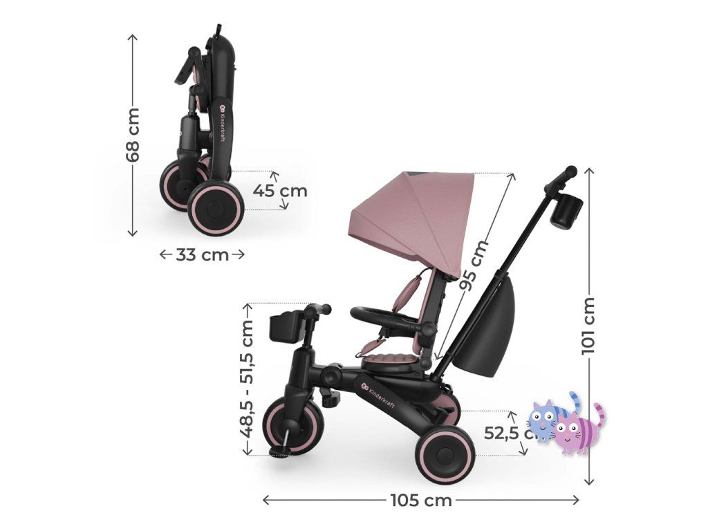 Kinderkraft JAZZ 3 kombinuje tříkolku vedenou rodičem s fází učení samostatné jízdy. Díky 6 režimům používání se model přizpůsobuje vývoji dítěte - od jízdy proti směru s kontrolou rodiče, přes samostatné šlapání až po režim odrážedla. Tříkolka odpovídá potřebám rodin v různých etapách vývoje dítěte.