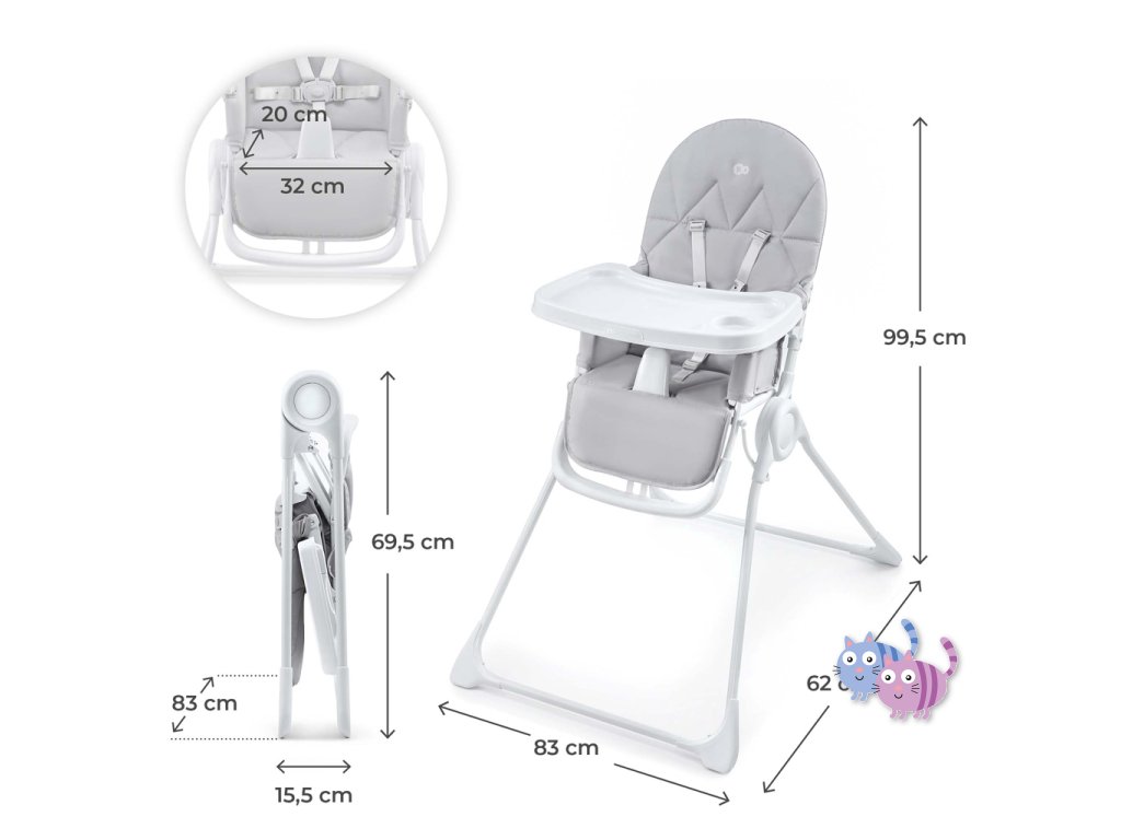 - 3-stupňové nastavení tácy – přizpůsobitelné podle věku a potřeb dítěte