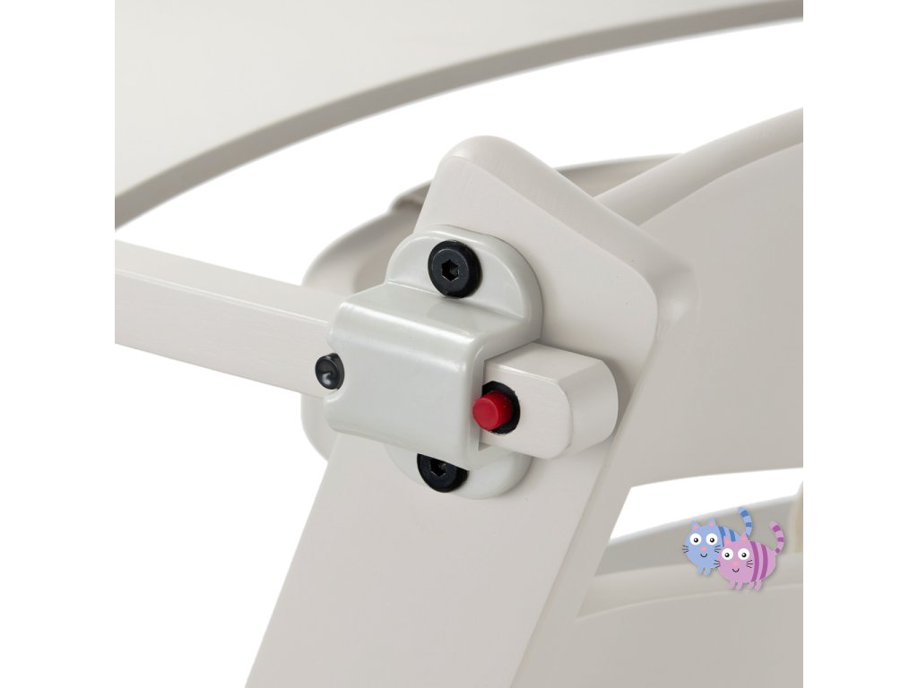 - nastavitelná opěrka nohou (4 kroky pro vysokou a 3 pro jídelní židličku) zvyšuje pohodlí dítěte během jídla - bez ohledu na jeho věk a výšku!