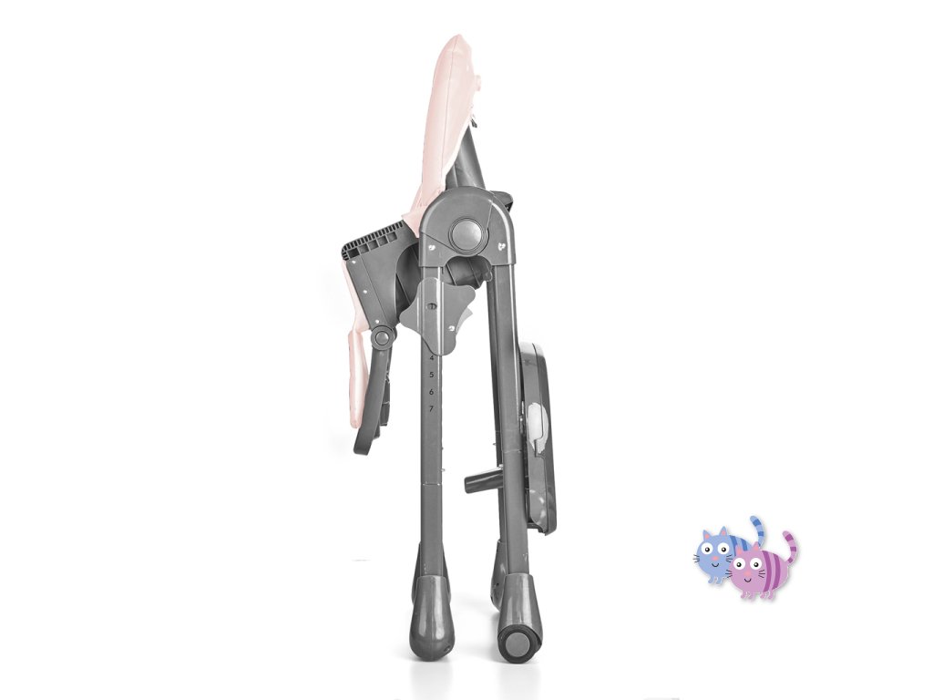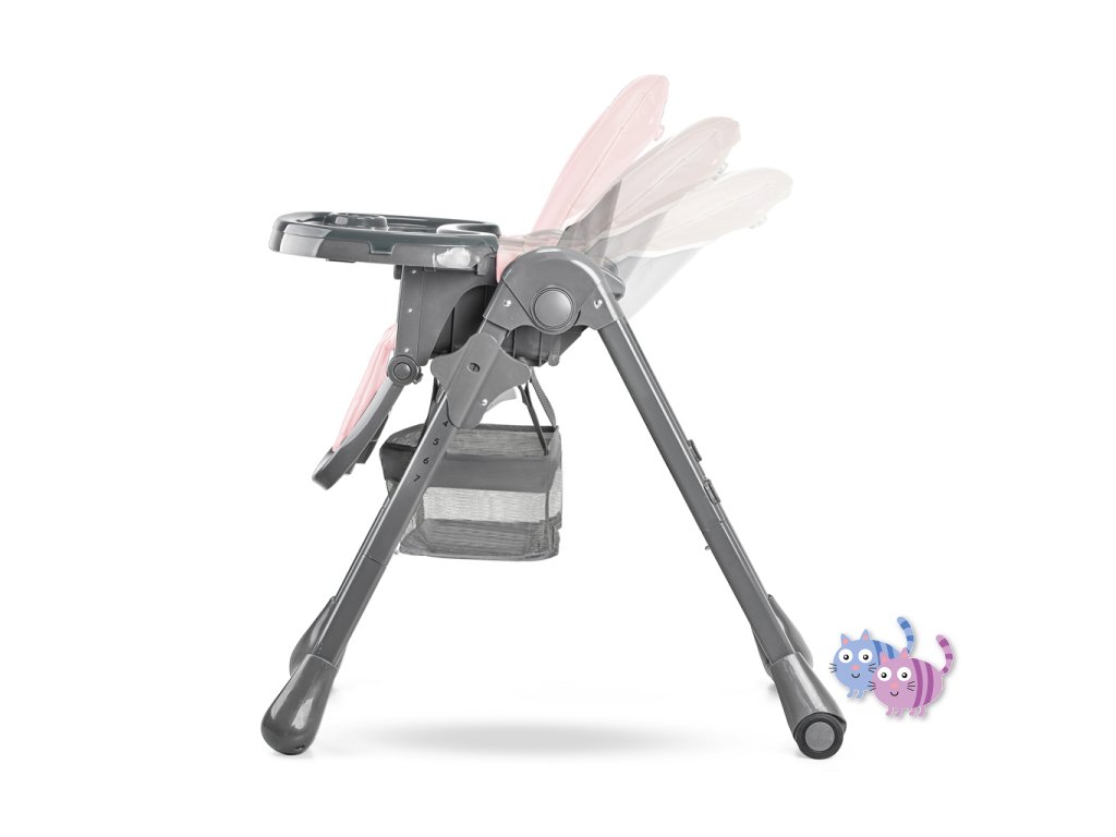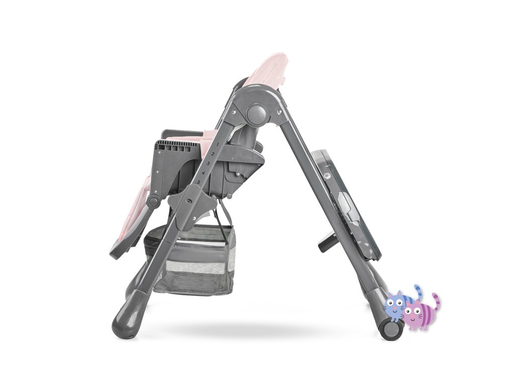 - Opěrka je nastavitelná ve 3 úrovních - jedním tahem snížíte opěradlo až do pololežící polohy! Dítěti se bude pohodlněji jíst a hrát si na vysoké židli, bude-li 100% vhodná pro jeho potřeby.