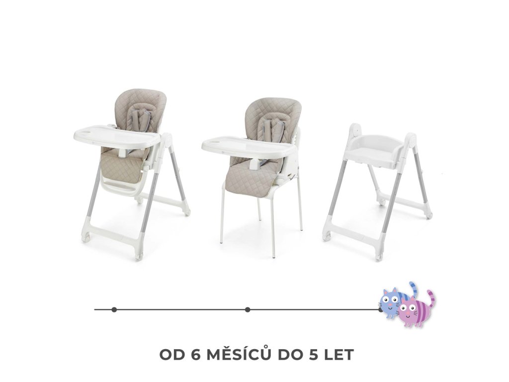 Kinderkraft TULO je funkční jídelní židle 3v1, která roste spolu s vaším dítětem – od prvních jídel až do předškolního věku. Dá se používat od přibližně 6 měsíců do 5 let, přičemž se přizpůsobuje potřebám dítěte v každé fázi.