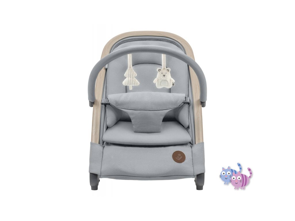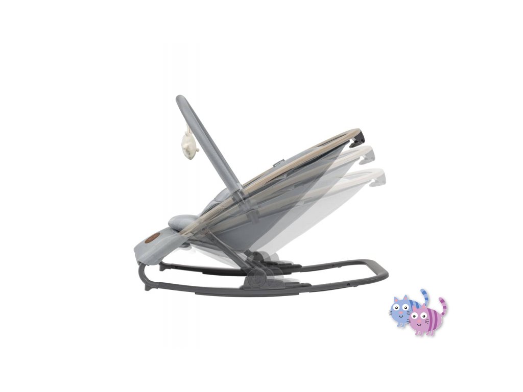 Provedení 2v1 umožňuje zvolit houpání nebo pevné sezení. Tři snadno nastavitelné polohy umožňují lehátko používat od narození v poloze vleže a v pozdějším věku pro sezení, které dítěti umožní sledovat dění ve vaší domácnosti. Odnímatelná hrazda se dvěma zavěšenými hračkami v podobě medvídka a stromu láká dítě k pozorování i ke zkoumání různorodých textur.