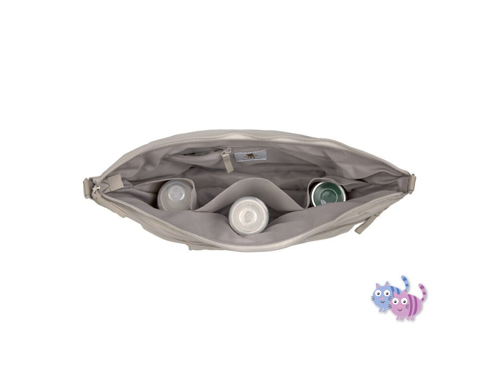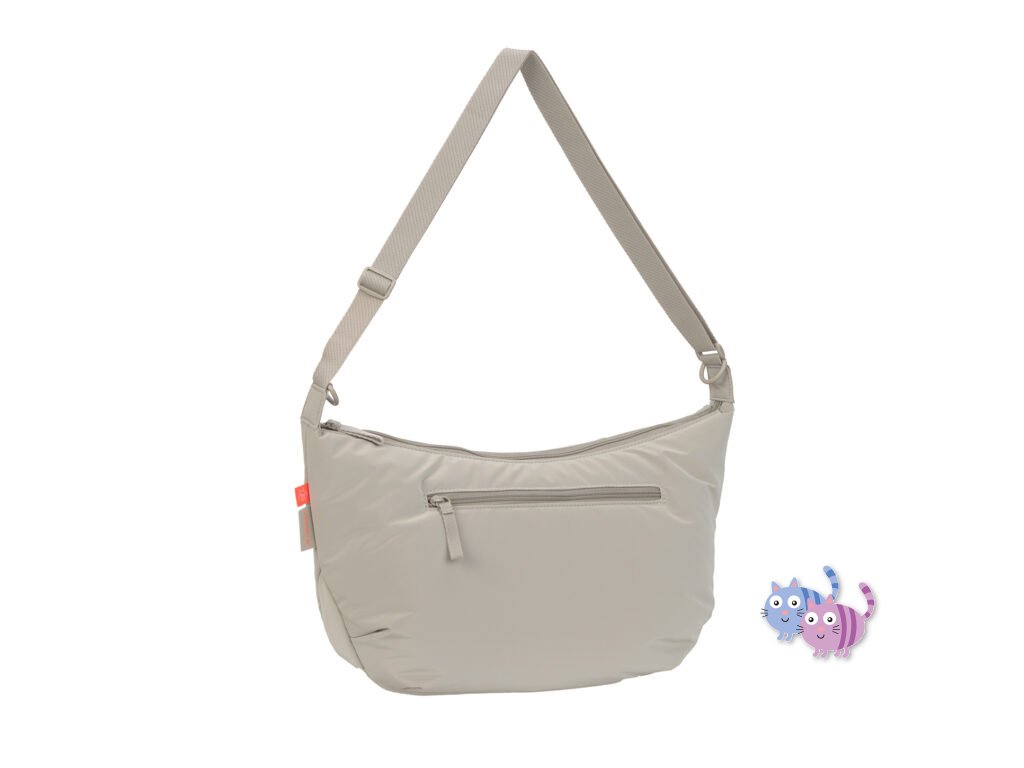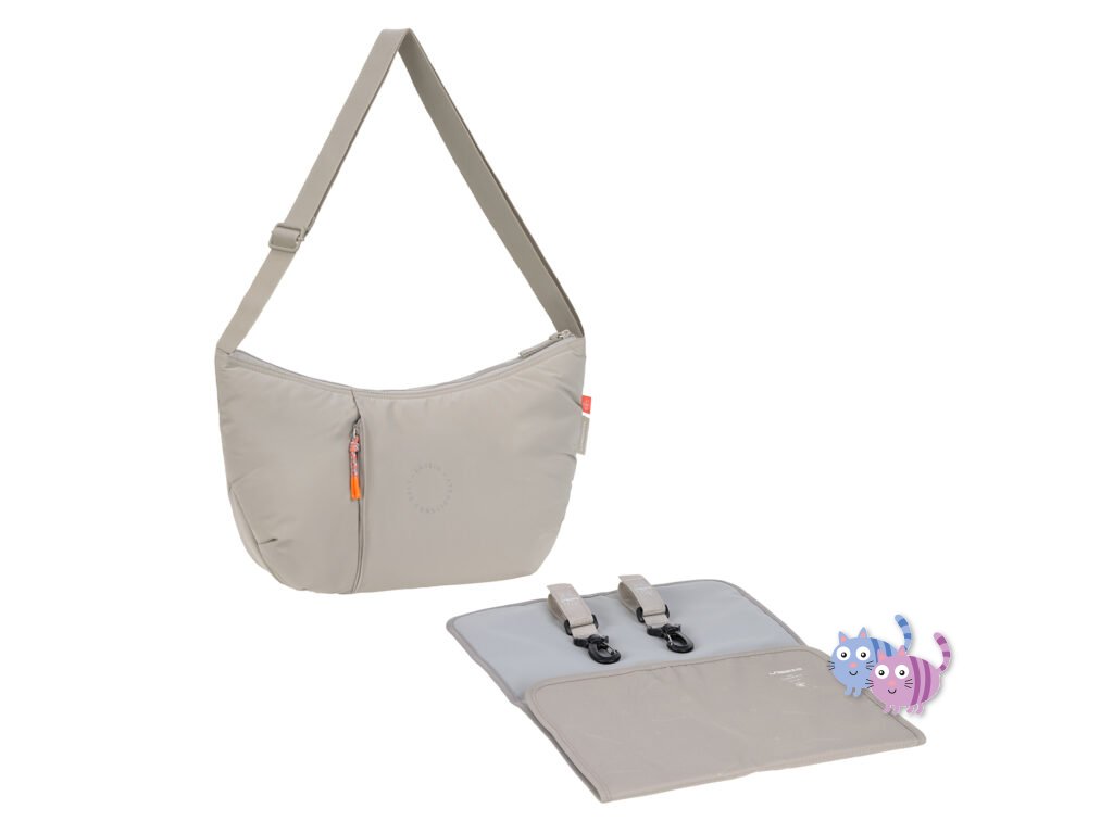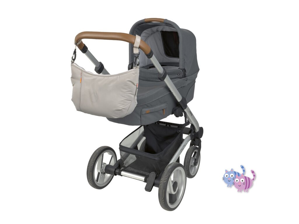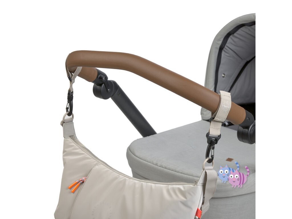 lze připevnit na kočárek pomocí háčků, nosit přes rameno jako kabelku nebo cross bag