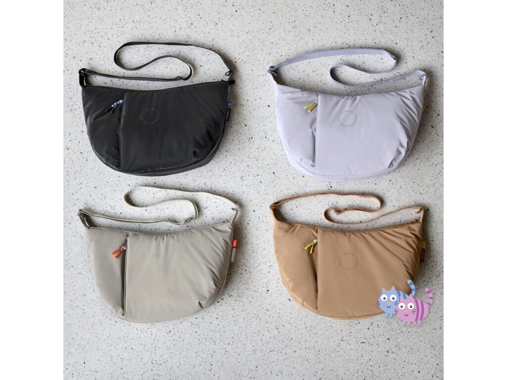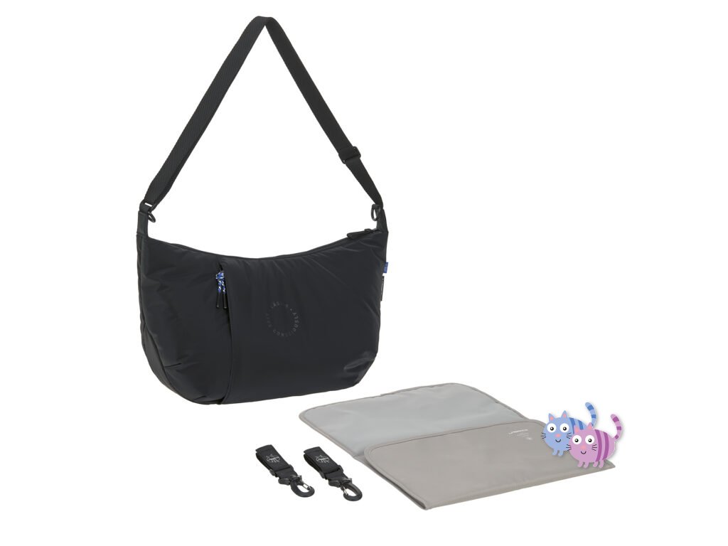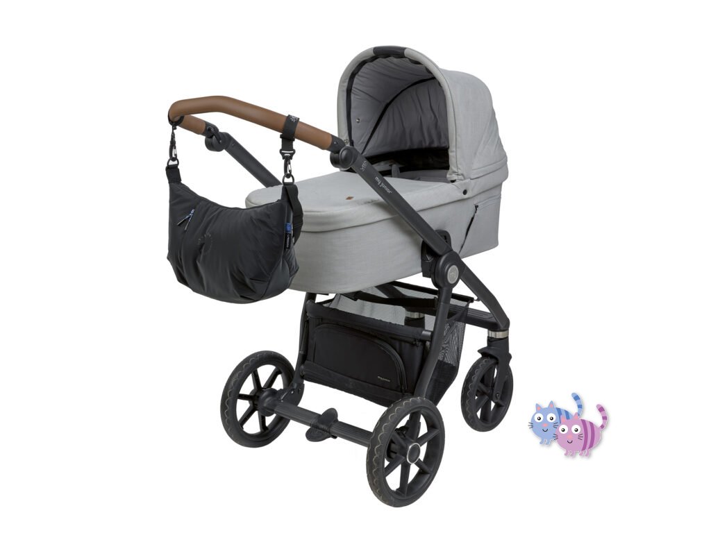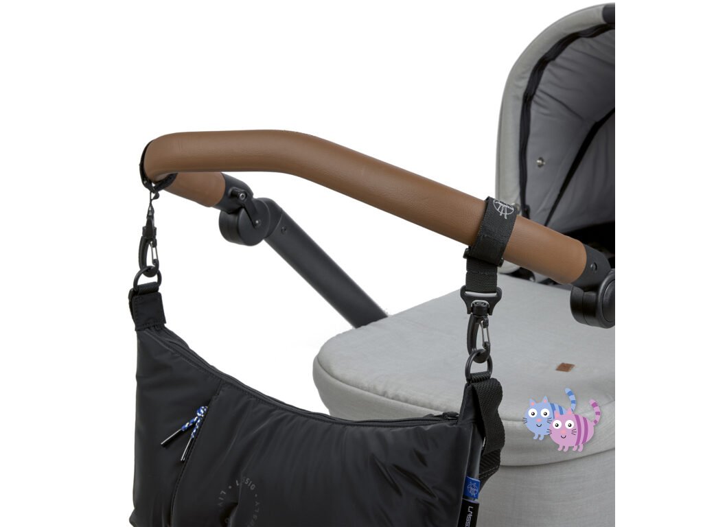 lze připevnit na kočárek pomocí háčků, nosit přes rameno jako kabelku nebo cross bag