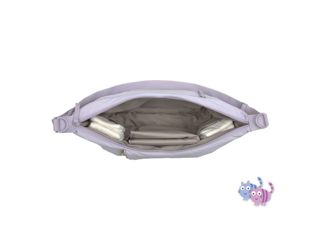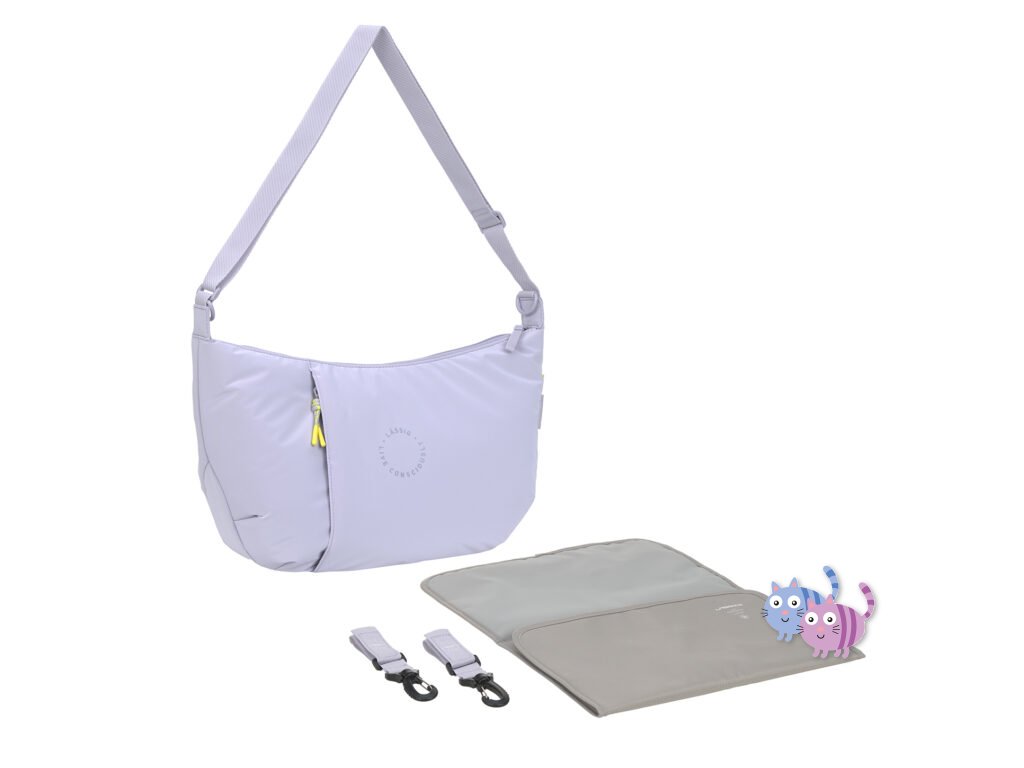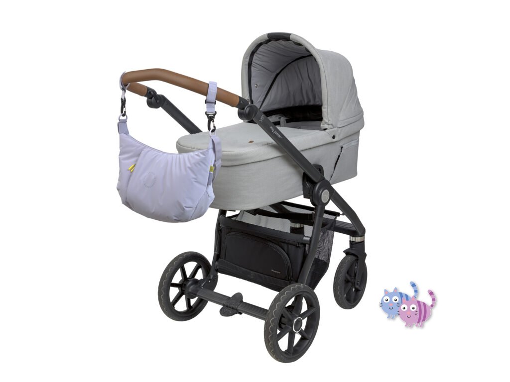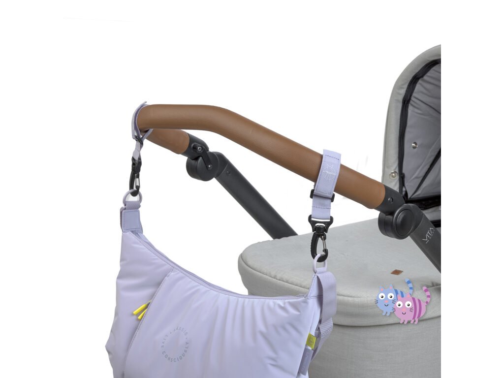 lze připevnit na kočárek pomocí háčků, nosit přes rameno jako kabelku nebo cross bag