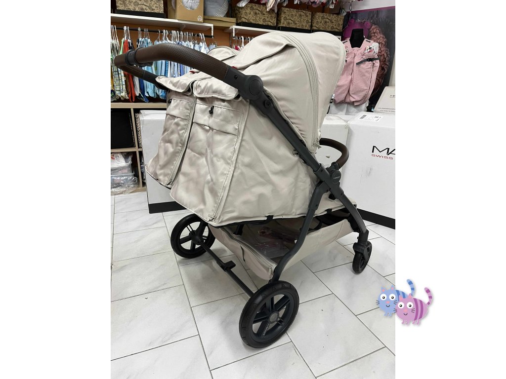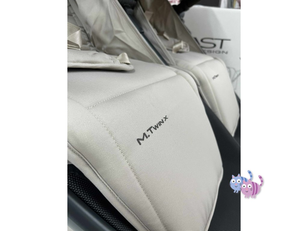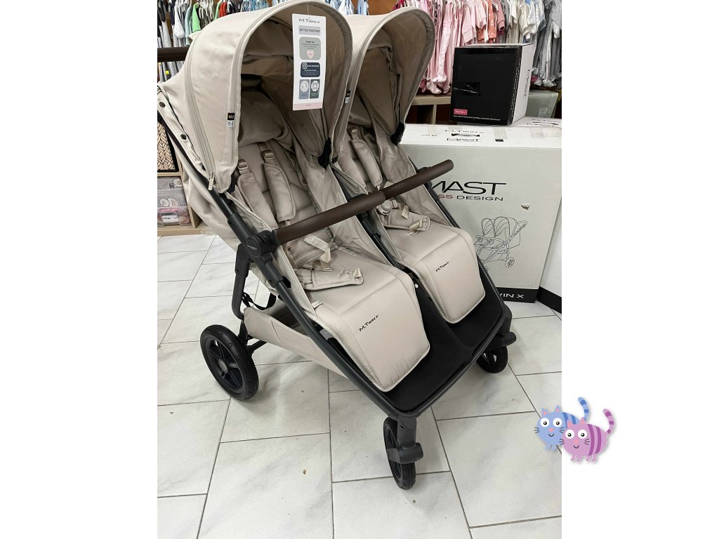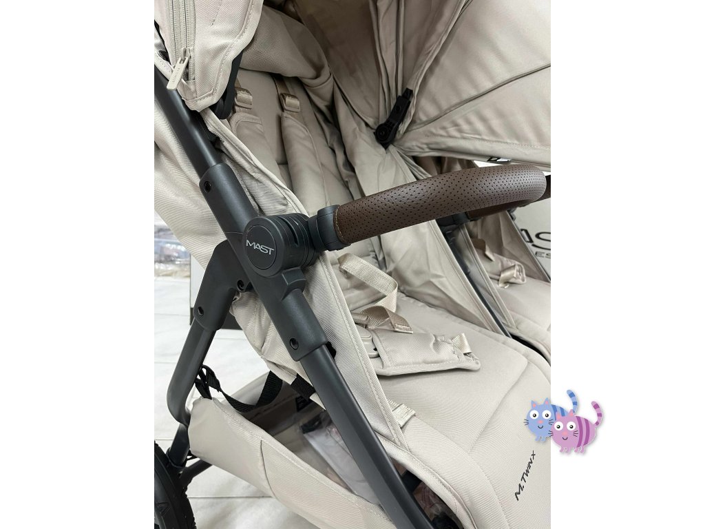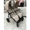Ve zkratce lehký a skladný podvozek, gelová kola, velice kvalitní potah kočárku, impregnovaný, UV +50. Kožená rukojeť i madla. Nosnost 2x22 kg. Odpružený podvozek - všechna 4 kola.