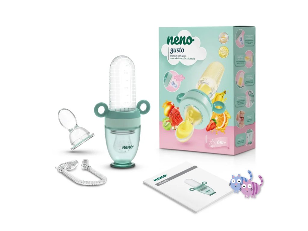 - Neno Gusto usnadňuje rozšíření stravy vašeho dítěte prostřednictvím pohodlného krmení. Jednoduše vložte ovoce nebo dušenou zeleninu do dudlíku a nechte své dítě objevovat nové chutě.