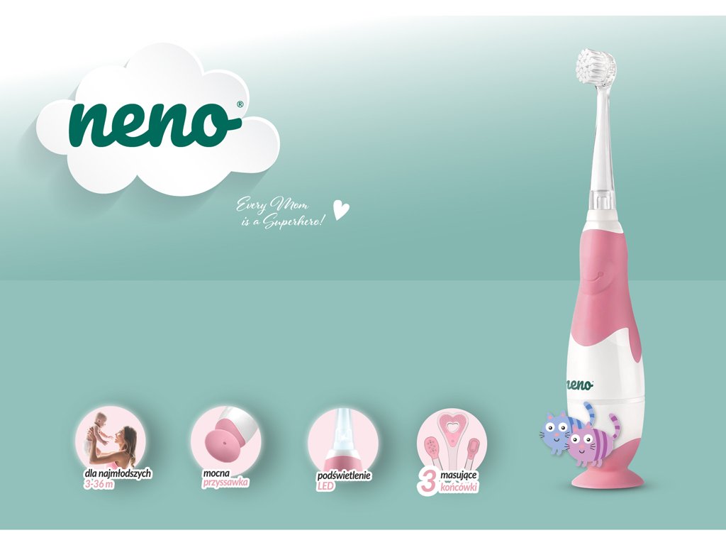 - Lze použít ik péči o dětičky bez zoubků. Neno Denti se dodává se speciální hlavicí, která se používá k masáži dásní dětiček starších 3 měsíců.