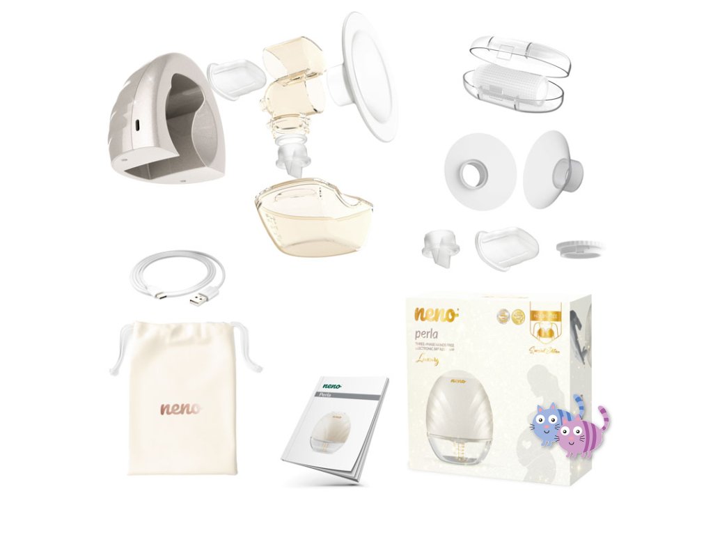 Neno Perla je inovativní bezdrátová handsfree odsávačka mateřského mléka díky které toho zvládnete opravdu hodně. Jeho lehká a malá konstrukce se vejde bez námahy do košíku podprsenky ke kojení a umožní Vám tak mít volné ruce. Odsávačka mléka funguje na základě tří fází s 9 úrovněmi nastavení. Má anatomický prsní štít ve tvaru prsu, který v úhlu 105 obepíná prs a podporuje tok mléka. Součástí jsou dvě redukce pro zmenšení velikosti prsního štítu v průměru 19 mm a 22 mm.