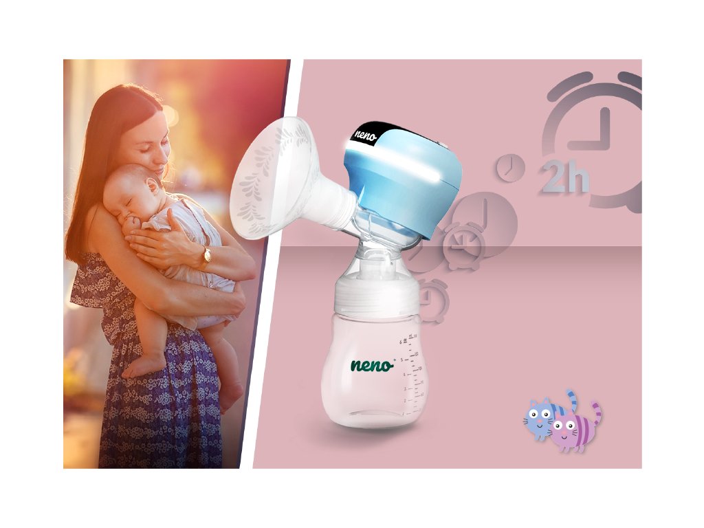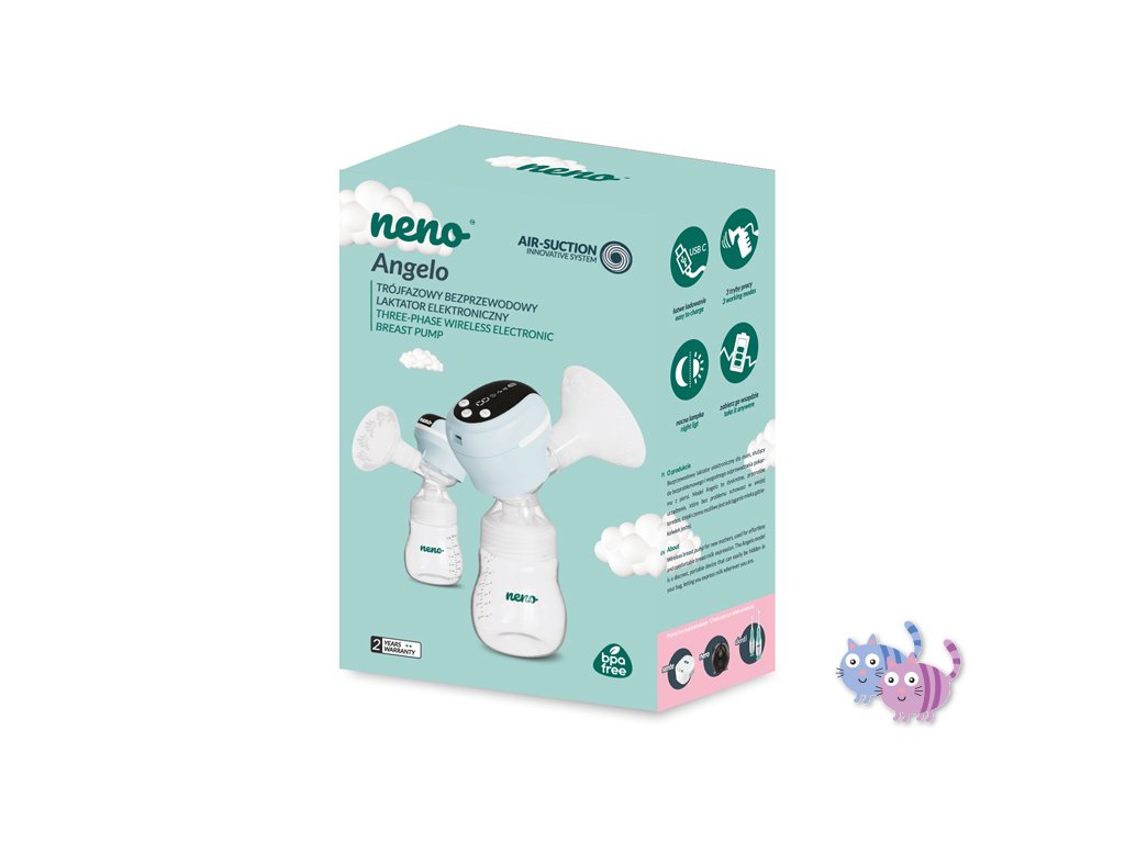 Neno Angelo je bezdrátová třífázová odsávačka mléka. Je podobná jako odsávačka Neno Uno, ale s přidaným třetím režimem odsávání – takzvaným smíšeným režimemLet-down, který umožňuje efektivnější odsávání mateřského mléka. Je lehká, přenosná a ergonomická - ideální pro výlety a použití venku.