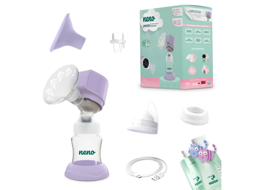 Neno Presto je elektrická odsávačka mléka se 3 fázemi a 9 úrovněmi odsávání. Je to perfektní pomocník pro kojící ženy po přirozeném porodu nebo i císařském řezu.