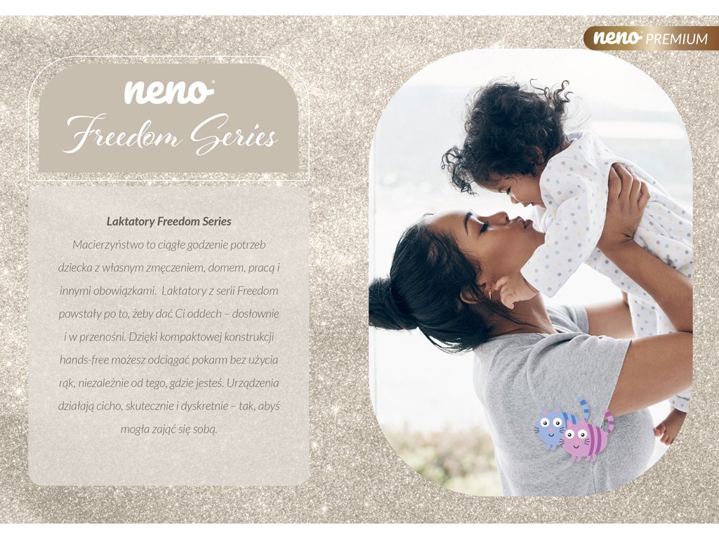 Neno Camino Pro je třífázová bezkabelová elektronická odsávačka mateřského mléka ze série Freedom. Přináší svobodu a pohodlí novým maminkám, které musí sloučit péči o miminko, domácnost, práci a vlastní pohodu.