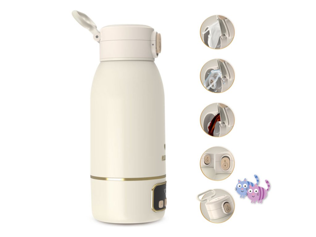 - Těsnící uzávěr: Cestování s dítětem už nebude problém. Ohřívač je vybaven nepropouštějícím uzávěrem a zámkem na tlačítko, který zajistí, že se nic nevylije a zařízení se nezapne samovolně.